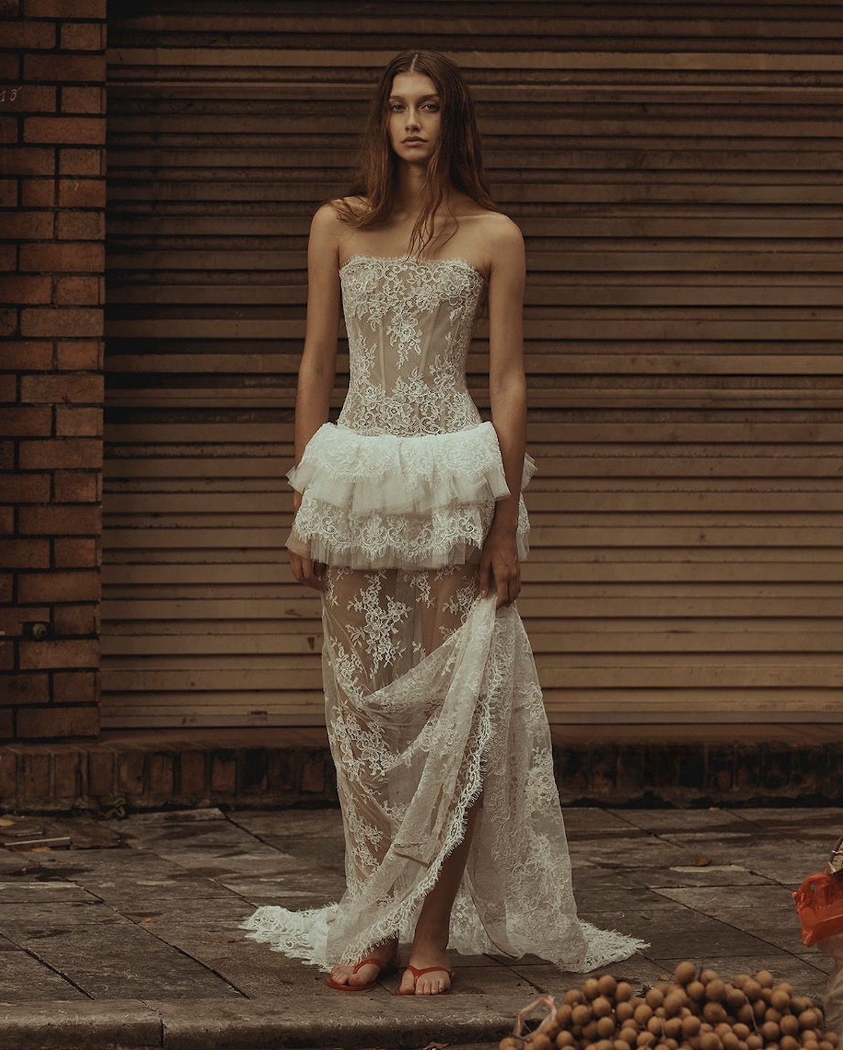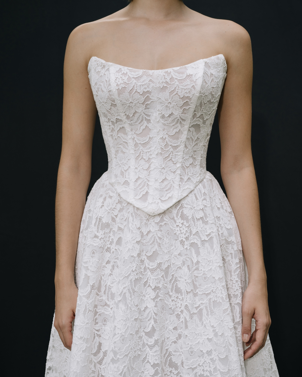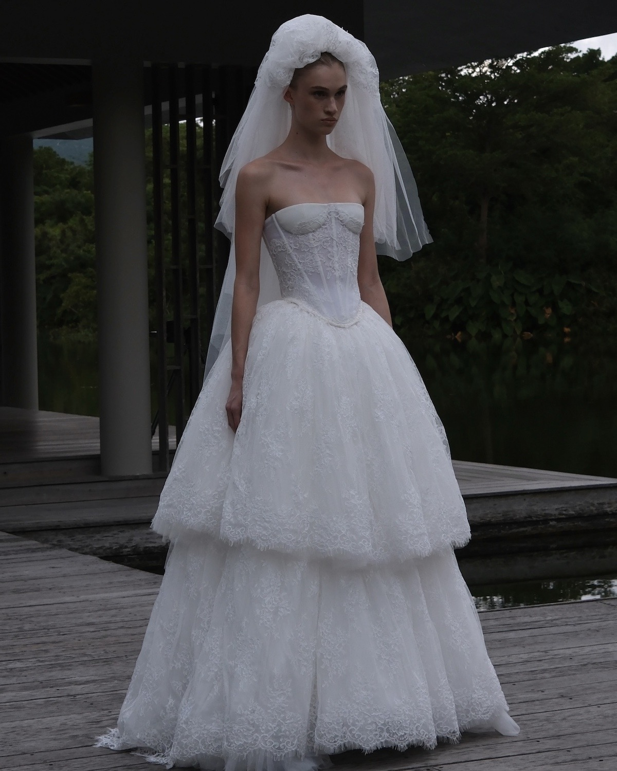Delicate yet daring, lace is stepping back into the bridal spotlight – this time with a sharper edge and a more fashion-forward approach. In the Fall 2026 bridal collections, designers are reimagining this timeless fabric through an editorial lens, elevating lace bridal gowns from romantic to modern luxury. Expect to see graphic Chantilly lace, striking corded motifs, sheer architectural detailing, and couture-level craftsmanship suitable for both the runway and the aisle. Whether layered, cut out, or unapologetically sheer, lace is poised to be the defining bridal trend of 2026, proving that an old favorite can still feel thrillingly new while remaining timeless.