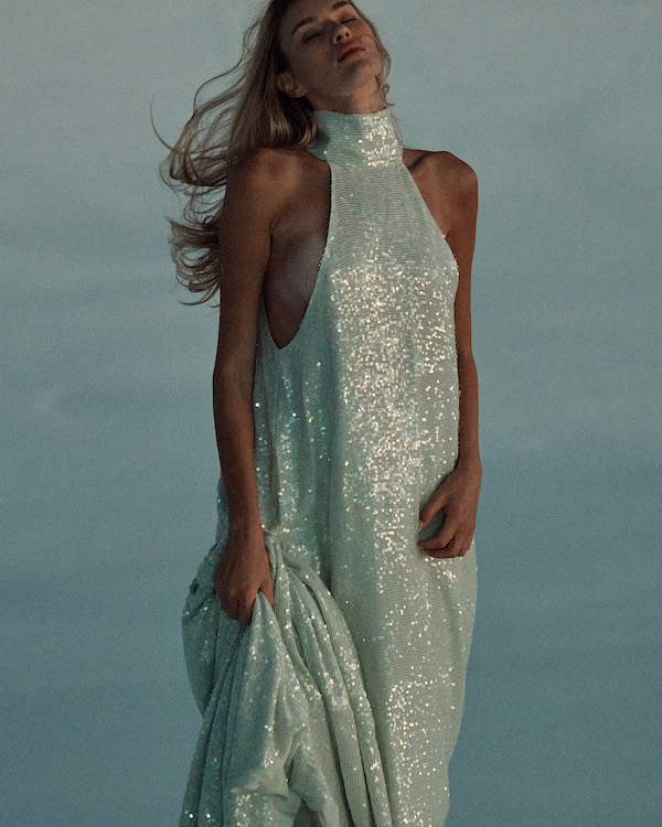 The highlight of Le Coucou is undoubtedly its stunning embellished offering, featuring three new beaded fabrications. A bespoke embellished design, which uses six different flat sequins, delivers an icy luminosity. A tassel beading, designed to catch light like snowfall at night, delivers texture and movement, while an all-over sequin design evokes the glistening beauty of a fresh blanket of snow at dawn.