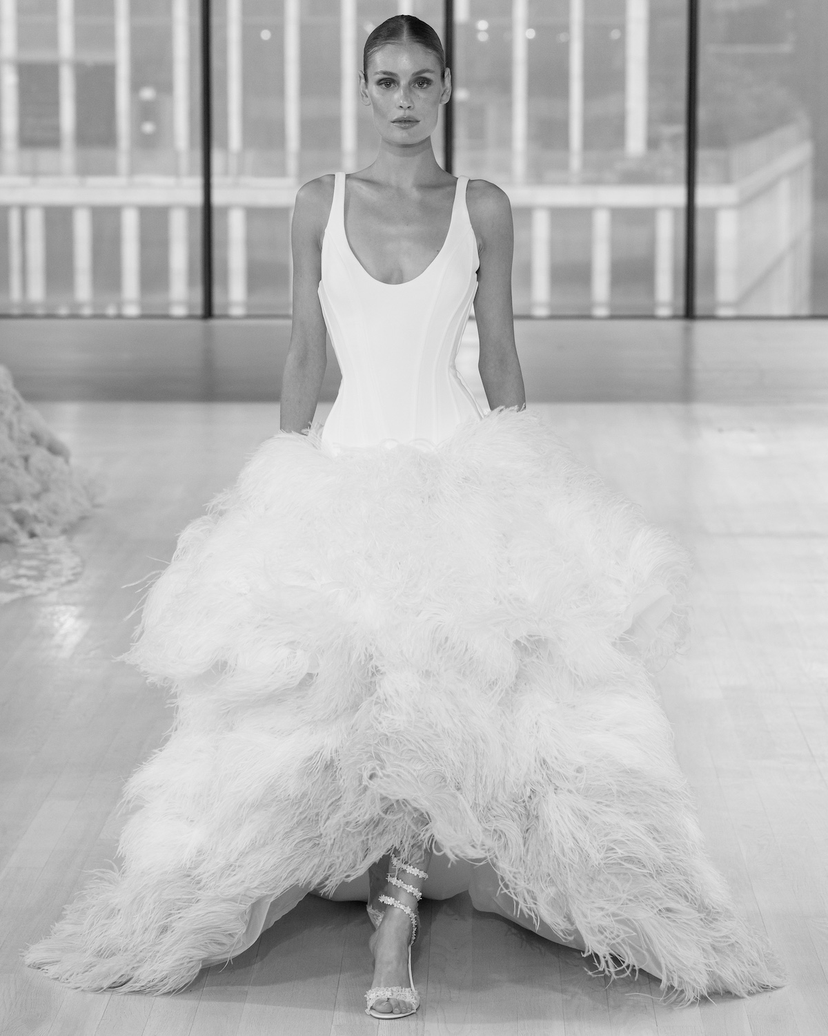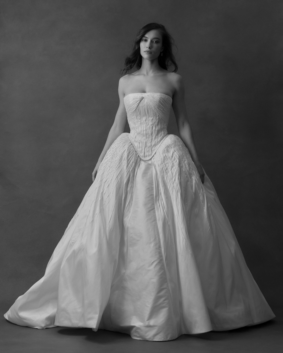 Bridal fashion is entering its age of duality. This New York Bridal Fashion Week, the Fall 2026 season unfolded as a study in modern romanticism, where designers challenged the dialogue between past and present, structure and softness, fantasy and form. Collections invited contrast: antique motifs were reimagined through sharp tailoring, ethereal volume made powerful through precision, and styling transformed from traditional to artistic expression. From Rococo flourishes to sculptural draping and lingerie-inspired silhouettes, bridal evolved untethered by convention, and THE WED was front row to witness it all. Here, we share our favorite moments and moods shaping the next chapter of bridal.