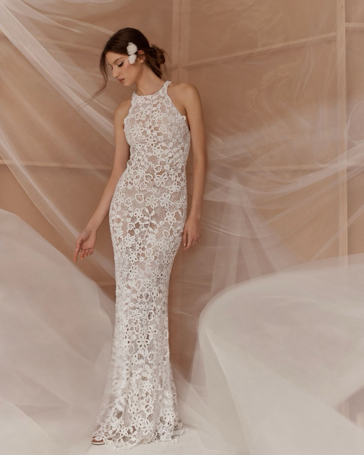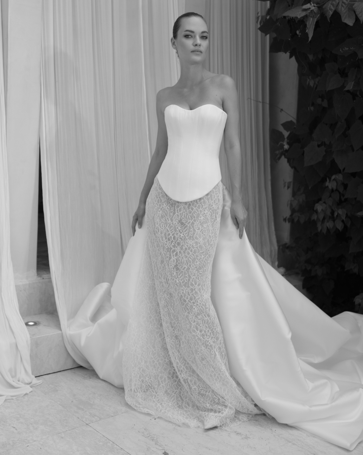 It’s hard to imagine a bridal collection without lace yet season after season, this classic motif finds new ways to evolve. Whether sculpted, deconstructed, or layered in unexpected ways, lace keeps its romantic cool while shaking off predictability. For forever favorite timeless silhouettes, look to Galia Lahav, Margot, Lihi Hod and Mira Zwillinger. KYHA Bride, Halfpenny London, House of Gilles, and Mariana Hardwick push lace toward a more contemporary mood.