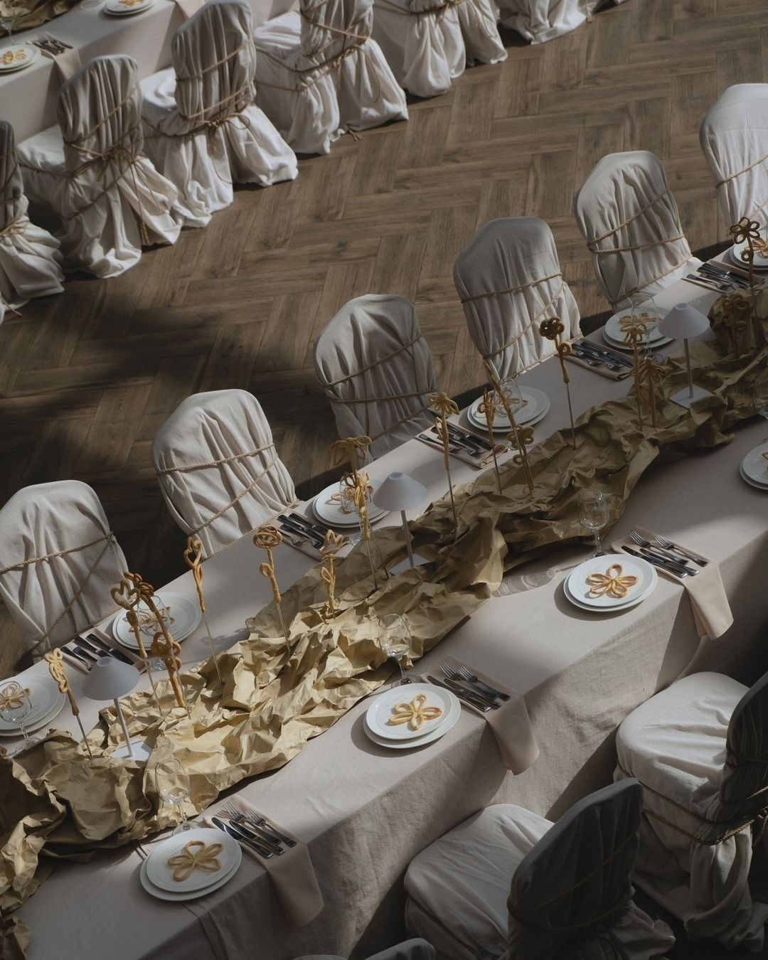 Say "yes" to dramatic drapery! Dominating the runways of recent seasons, and now perking up at weddings, we see this trend growing for the coming 2025 year. For an impactful, truly Baroque-inspired feel, opt for exaggerated lengths and forms of fabric, gracefully cascading from the ceiling. If you're a minimalist at heart, choose sleek, sculpturesque designs that are just as striking but with a more understated elegance.