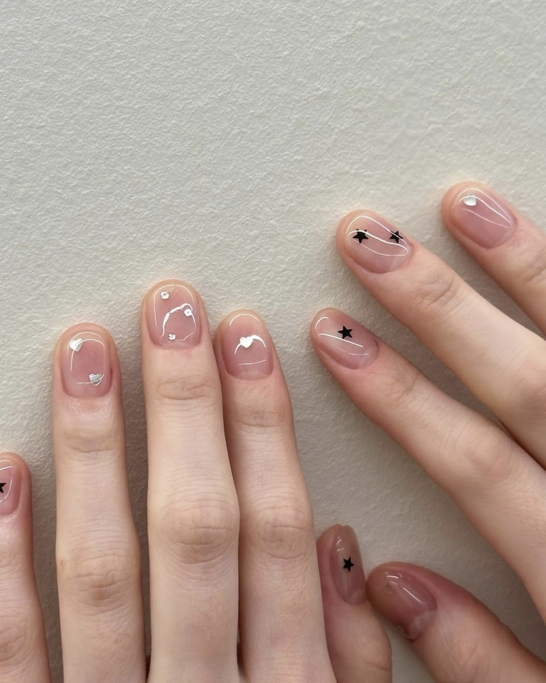 Stars are no longer just playful stickers from the Y2K era, they’ve been reborn as bold, graphic motifs. Oversized, geometric silhouettes in metallic or contrasting tones transform nails into wearable pop art. They can accent a minimalist base or cover the entire nail for a dramatic finish. This trend is where nostalgia meets the future: a celestial twist that feels both cheeky and couture.