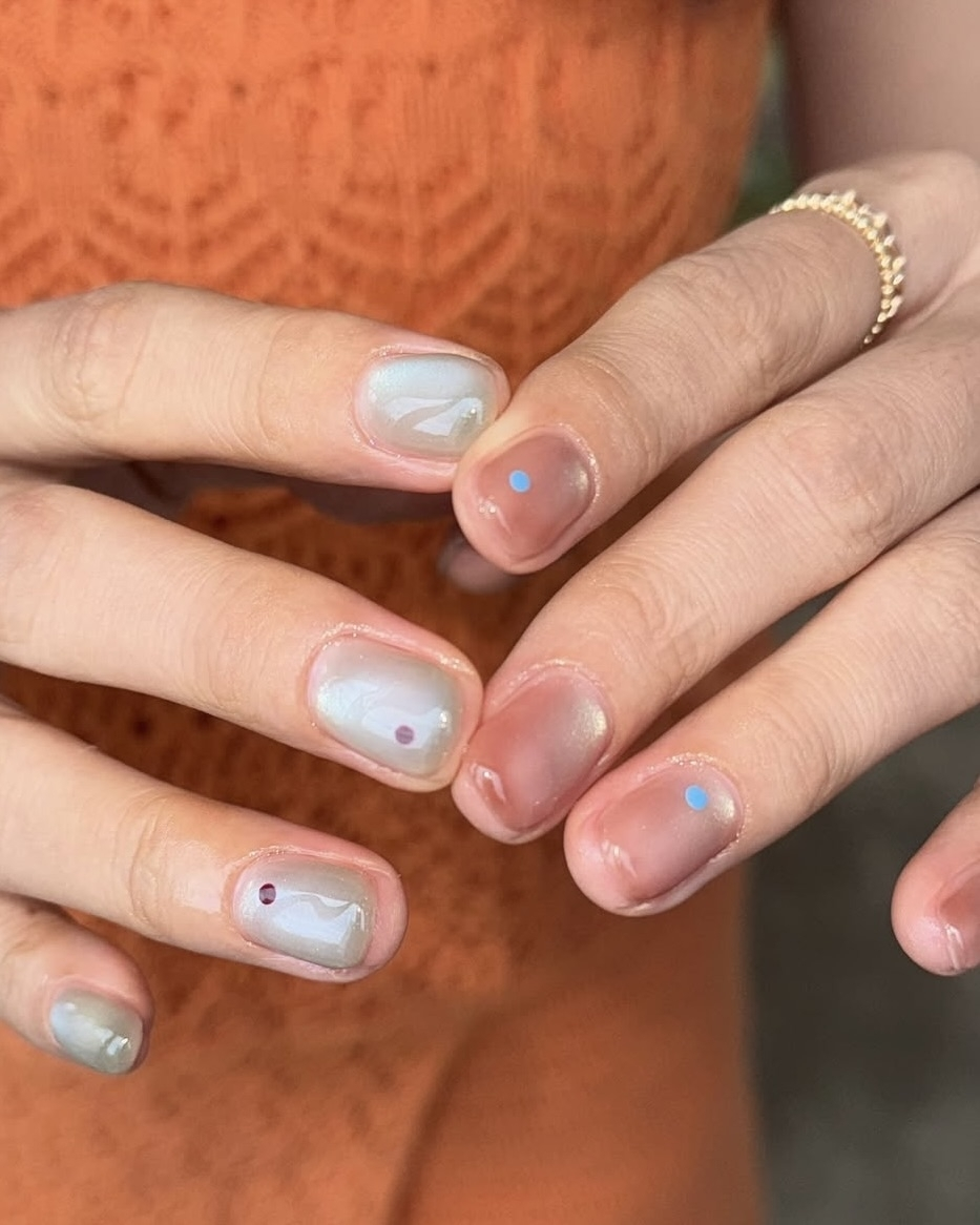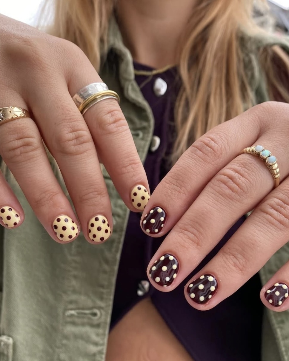 Dots refuse to disappear, but next year, they're anything but predictable. Instead of uniform polka patterns, expect playful experimentation with scale, layering, and color. Dots scattered across abstract bases and combined with stripes or metallics create a flirty-meets-artistic vibe. The result is whimsical yet elevated – perfect for those who want their nails to look joyful and fashion-forward.
