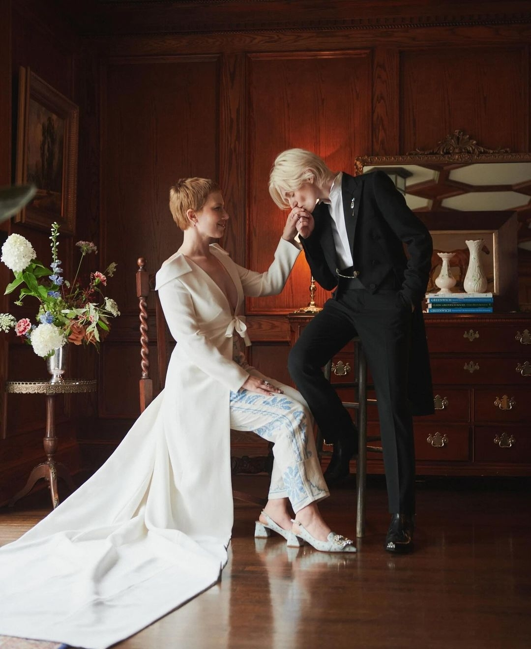 “In 2025 expect to see brides and grooms putting even more thought into their wedding wardrobes, curating highly personalized looks for every event from the engagement to the after-party,” shares Nicole Amarise. “This trend will likely include a blend of modern and vintage-inspired styles, with each outfit carefully chosen to reflect the theme and mood of each wedding occasion.”
