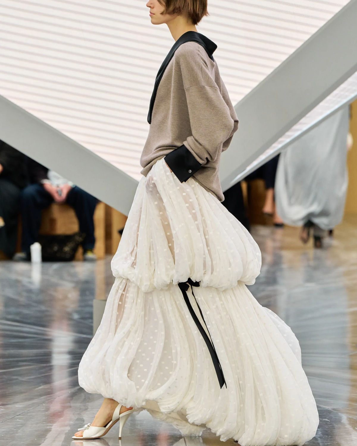 Airy, bouncy bubble skirts are floating back into fashion’s front row. For Spring-Summer 2026, the silhouette gets a cool-girl remix — less sweetness, more form. Designers are inflating hems with just the right dose of volume, giving looks a playful lift without losing modern edge. It’s flirtation, redefined.