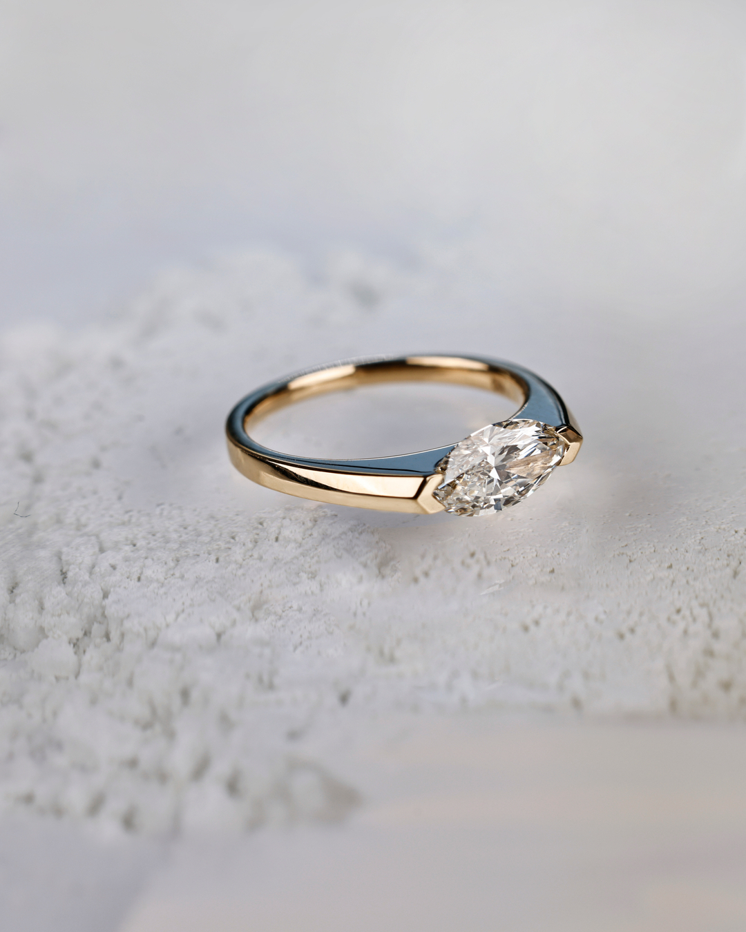 The marquise diamond cut intertwines boldness, elegance and timelessness, making it a top pick for fashion-forward couples seeking unique accents and a design that dares to push the boundaries. Its unconventional, elongated shape with pointed ends creates the beautiful illusion of a larger diamond while visually lengthening the finger for an elegant appeal. Celebrated for versitality, marquise diamonds can be set vertically for a traditional look or in an east-west position for a contemporary, on-trend feel. Opt for a single large solitaire stone for an understated look, or a cluster of mini marquise diamonds for a statement band.