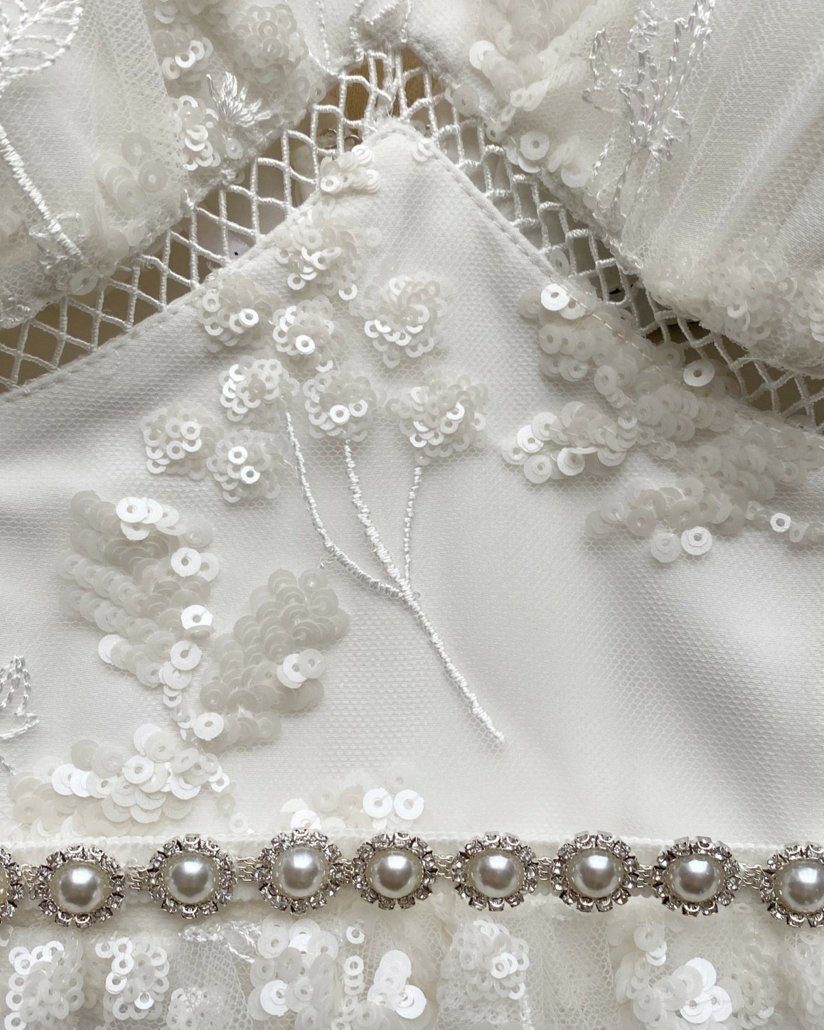 self-portrait ivory blossom sequin two tier midi dress, $555