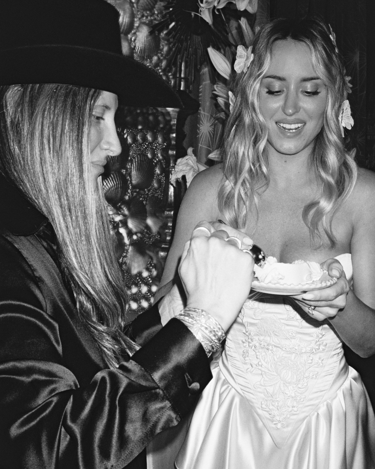 At the last minute, I decided to swap my classic long white veil for one adorned with delicate silk butterflies, which felt truer to the spirit of the day. Later in the night, I changed into a short skirt I designed for dancing, pairing it with vintage 1998 Dolce & Gabbana butterfly heels to tie into the day’s whimsical theme. My final look was a vintage 1930s sequin gown reimagined into a modern, sleeveless silhouette. It felt like wearing a work of art — three looks in total for one unforgettable night.