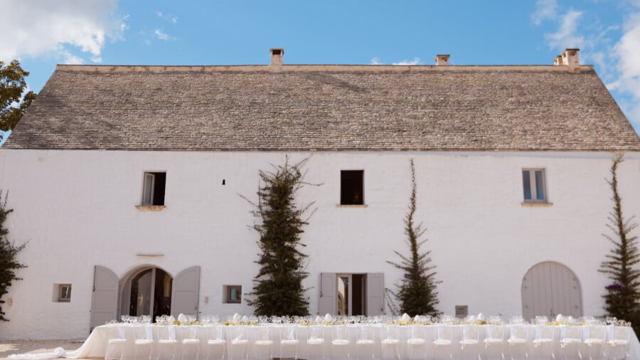We always knew we wanted a destination wedding, though the destination itself was unknown. We wanted the property to guide us. As lovers of interior design, we were immediately drawn to the thoughtful renovation of the historic Masseria Pistola by Thurstan Design (Soho House), and Puglia, Italy, naturally became the perfect setting. The Masseria struck a flawless balance between heritage and contemporary elegance. Beyond its beauty, it allowed us to host 22 of our closest friends for an entire week, transforming the celebration into an immersive experience rather than a single day. The gardens, trulli, and interconnected buildings offered a succession of intimate, picturesque settings, each unfolding effortlessly into the next, creating new moments and experiences for our guests.
