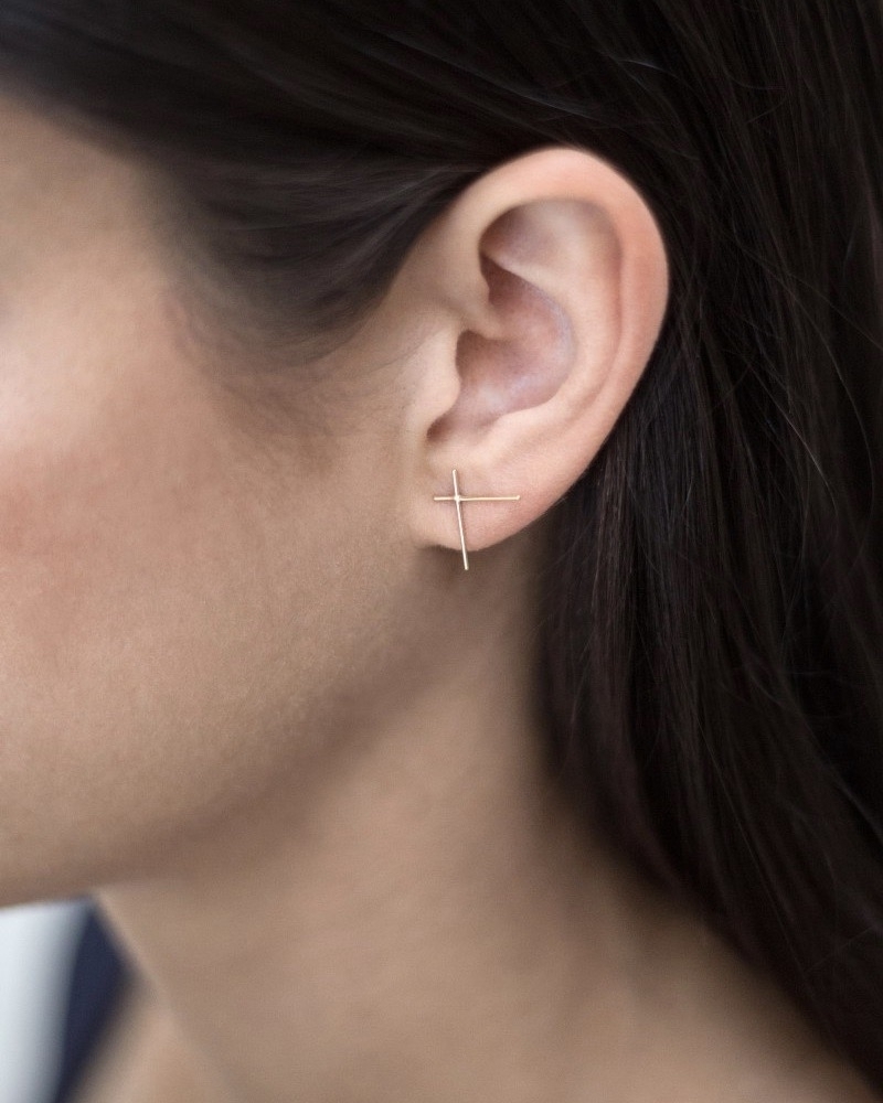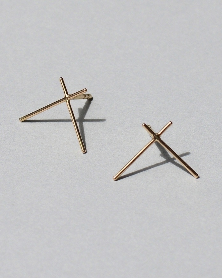 Saskia Diez Big Cross Earrings, polished 18k gold wire, $364