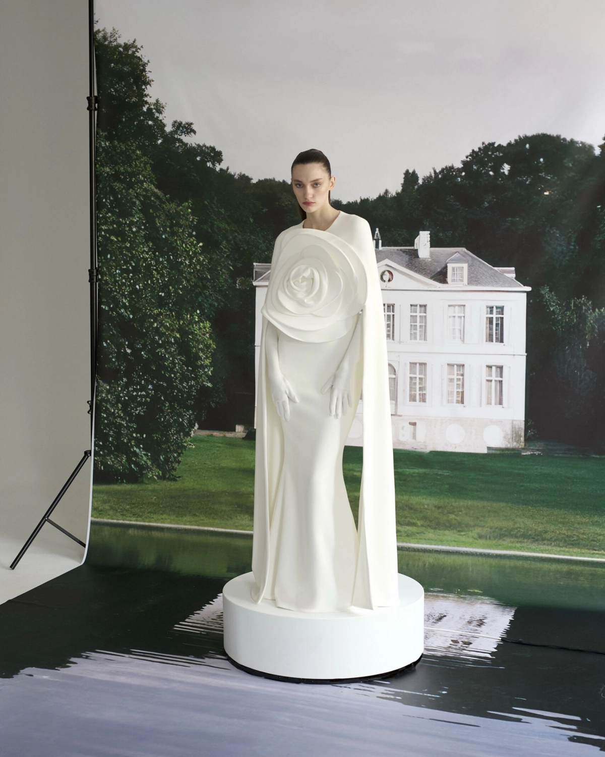 Solace London Leni Cape-Effect Crepe and Faille Gown, $1,010