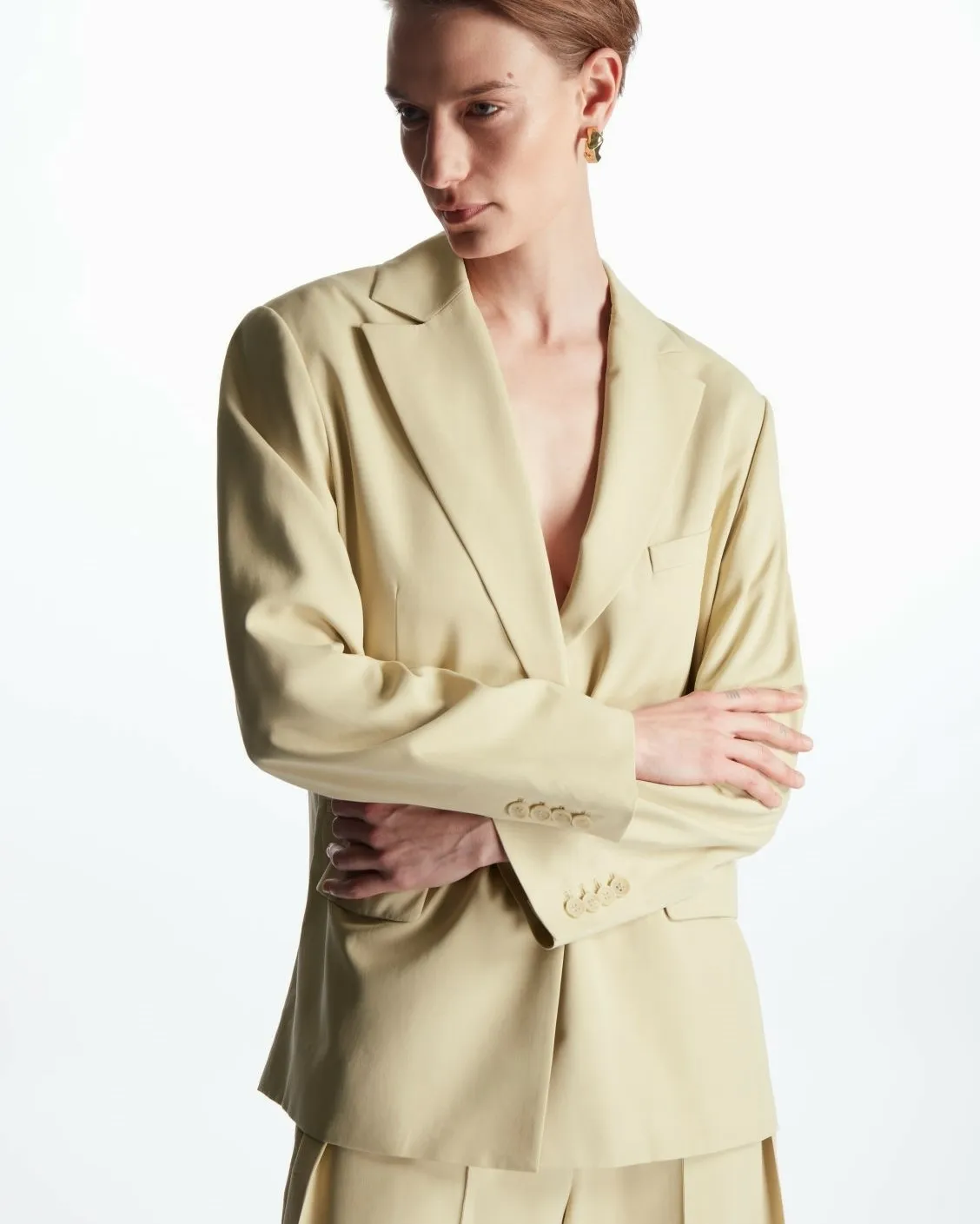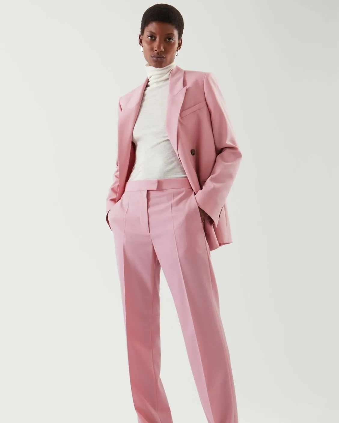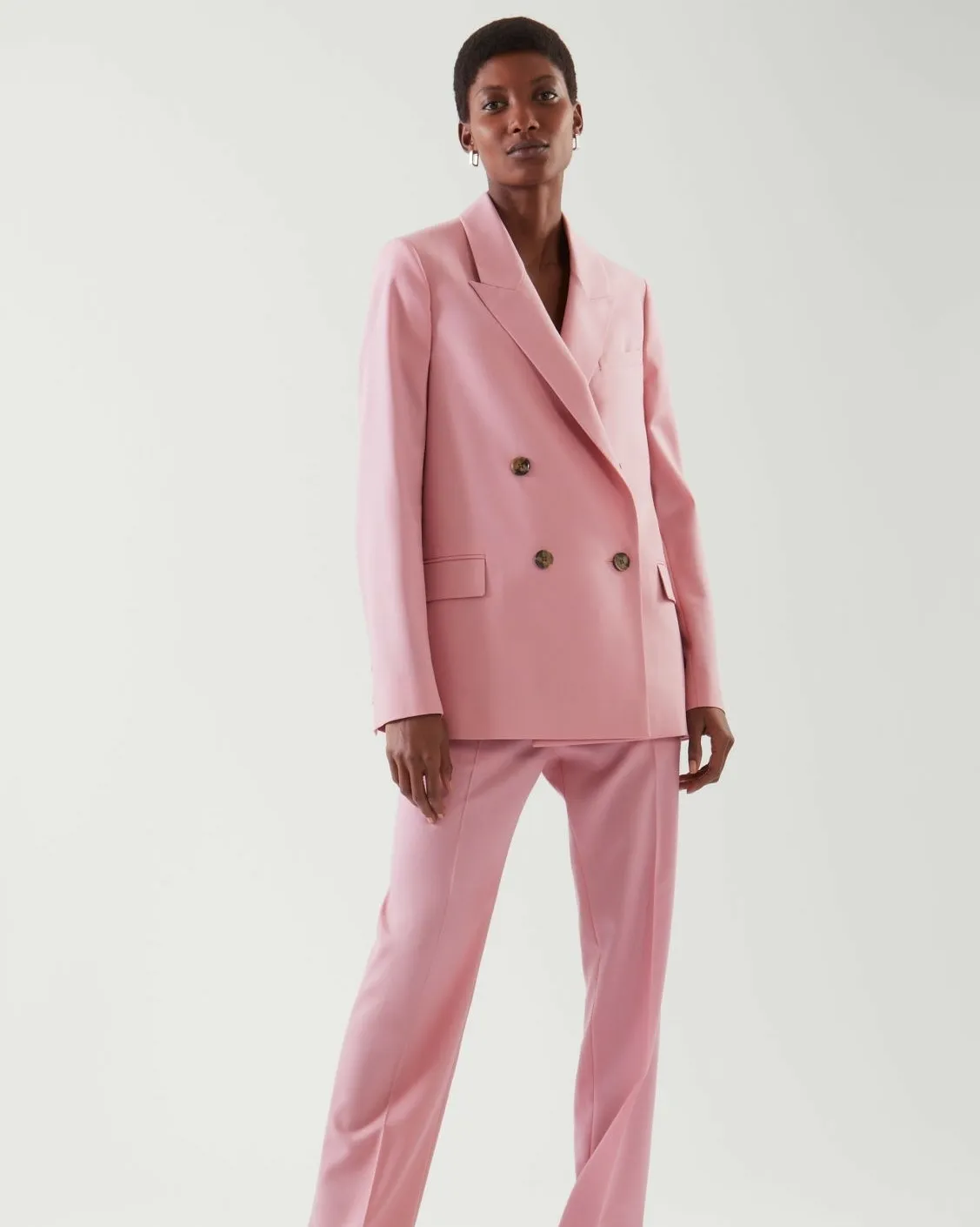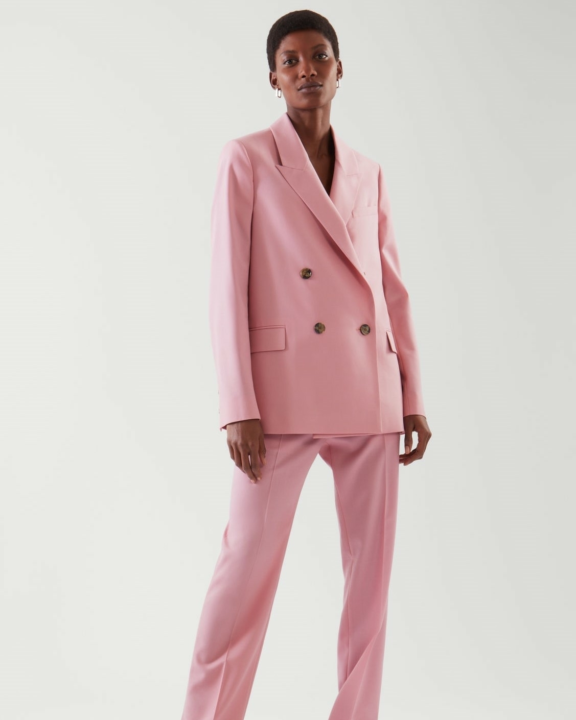 Cos regular-fit double-breasted blazer ($225) & straight-leg wool pants ($135)