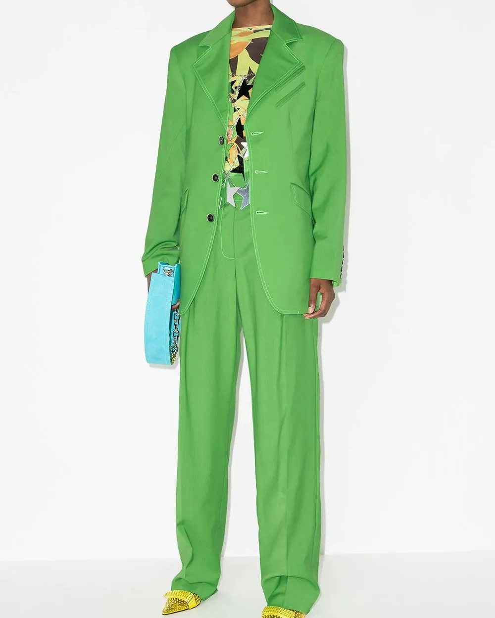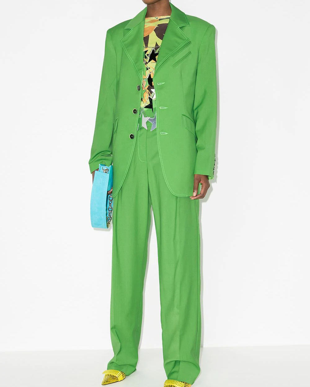 Christopher John Rogers single-breasted oversized blazer ($1,695) & pleated wool tailored trousers ($1,040)