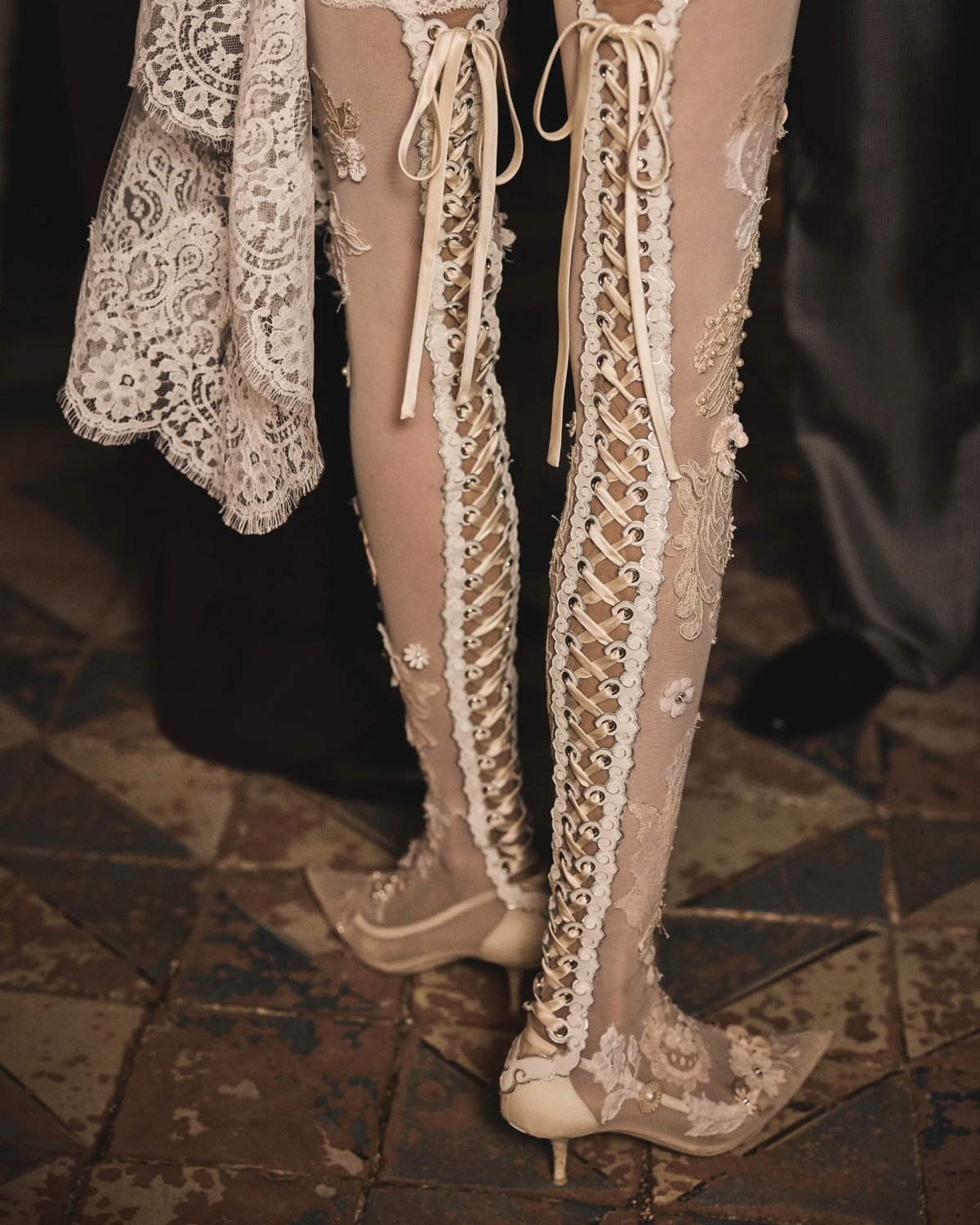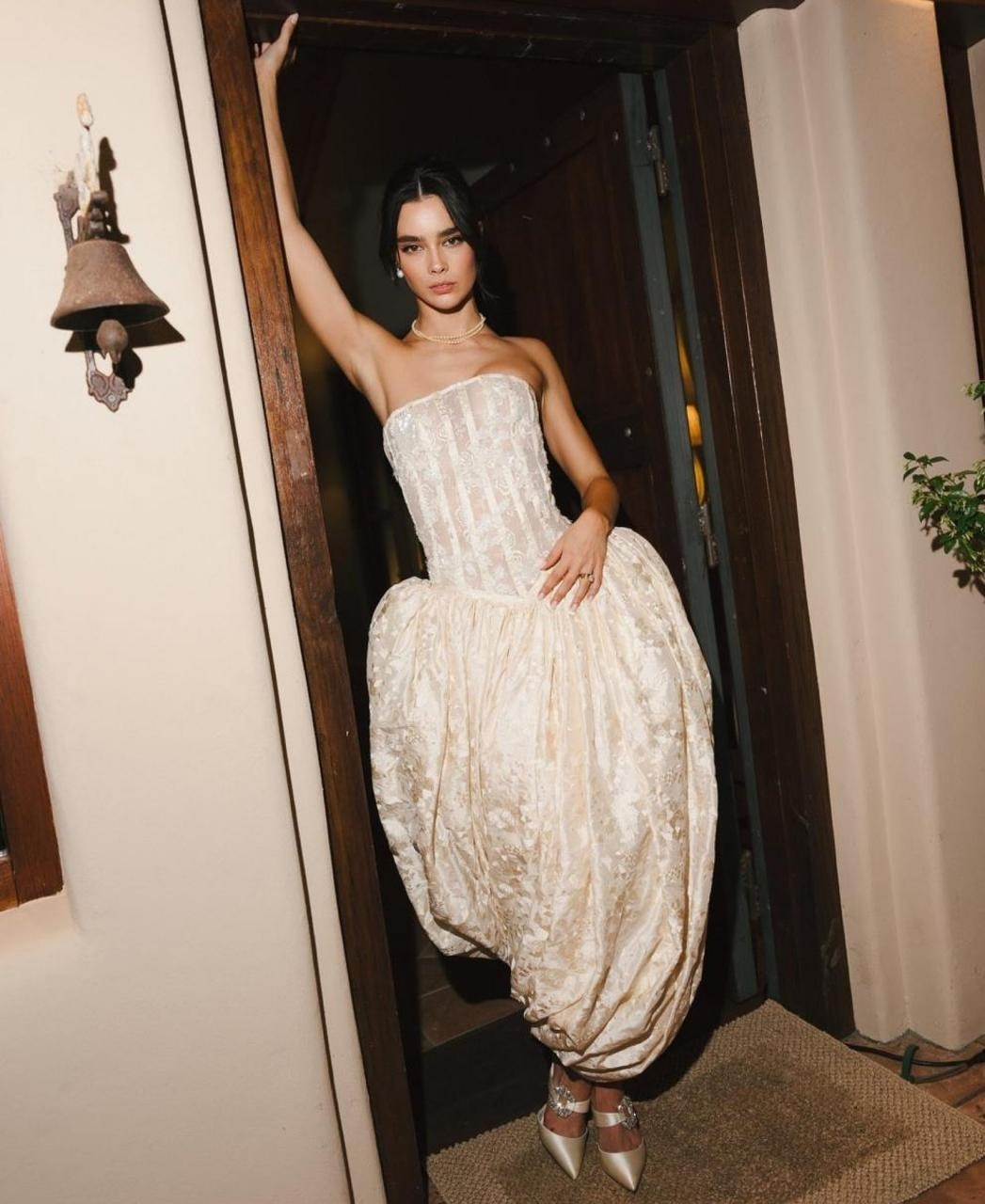 Italian supermodel Mariacarla Boscono wed Olympic pole vaulter Claudio Stecchi in a dreamlike ceremony at the historic Villa Valguarnera in Bagheria, Sicily. Radiating elegance, Boscono donned a bespoke Dolce & Gabbana Alta Moda gown, intricately crafted from upcycled vintage Sicilian fabrics, paired with a delicate pleated tulle cape and a porcelain flower crown, evoking timeless grace. The intimate affair celebrated family heritage with simplicity, featuring traditional Sicilian delicacies and understated decor.