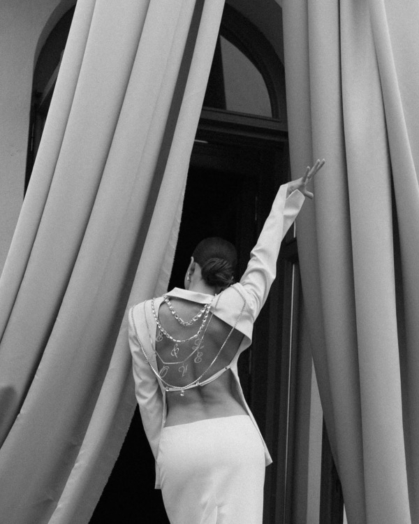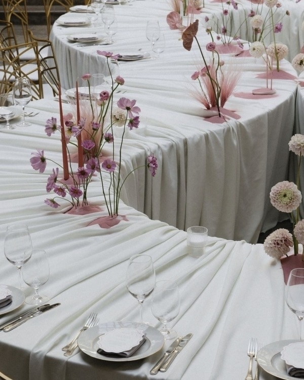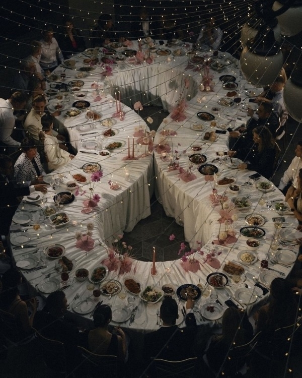 The elegance of draped fabric on a gracefully curved table, paired with delicate pink flowers and candles, is something we could discuss for ages. And how about a grand pink bow in place of a traditional altar? We find it absolutely delightful! The bride’s ensemble – a blazer and skirt embellished with silver pendants – was undoubtedly a standout feature of the day. Let this inspire you for your own intimate wedding!
