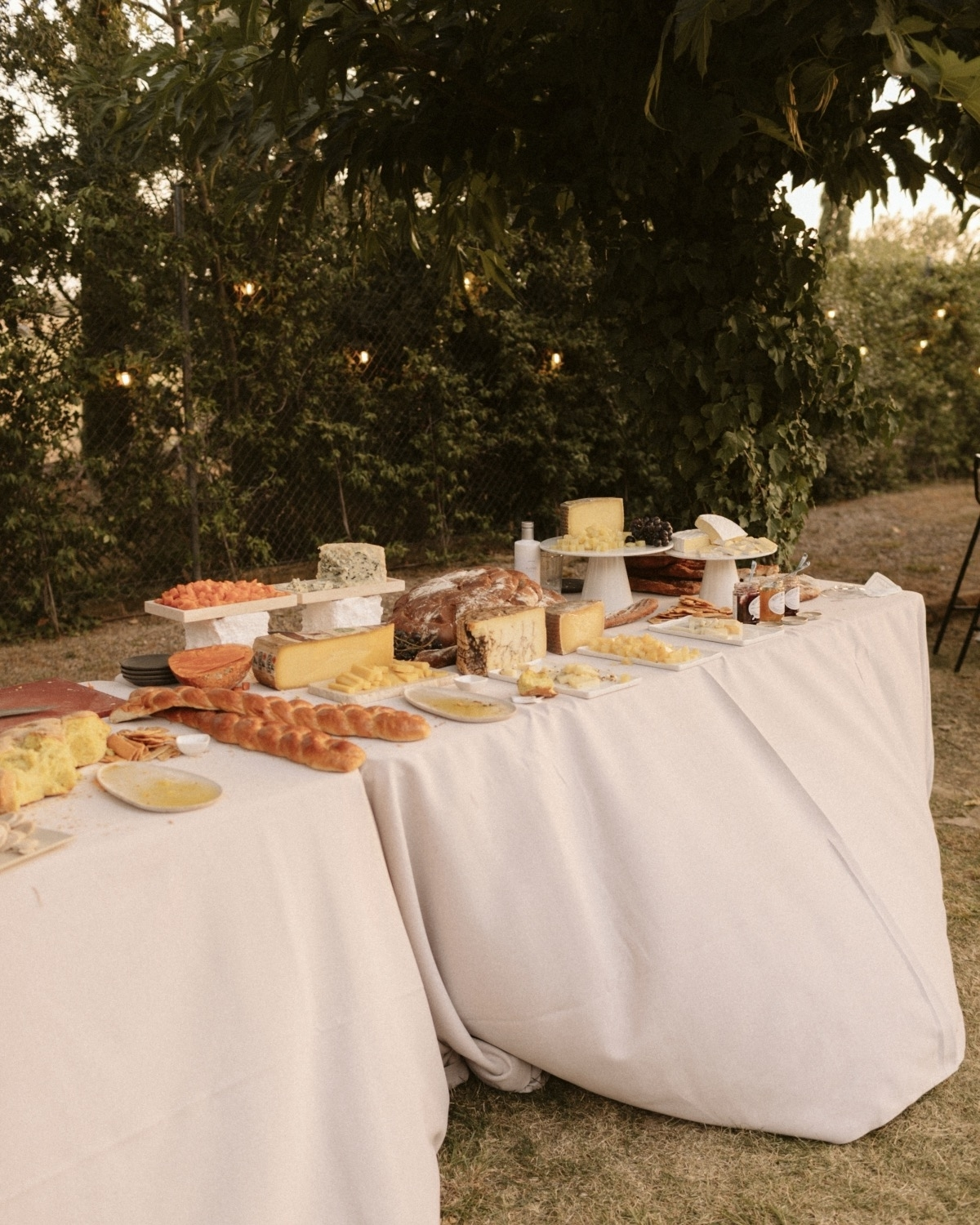 Bread decor, sophisticated fabrics, and softly glowing candles – can anything be more inspiring for a refined wedding? Laura and Max's celebration in the picturesque region of Empordà, near Barcelona, truly enveloped us in the serene charm of rural Spain, all while maintaining an air of timeless elegance and unforgettable venue design. Laura was a vision of timeless beauty, wearing a pleated silk bridal gown by Danielle Frankel, paired with a flowing chiffon cape by The Muse Collective.
