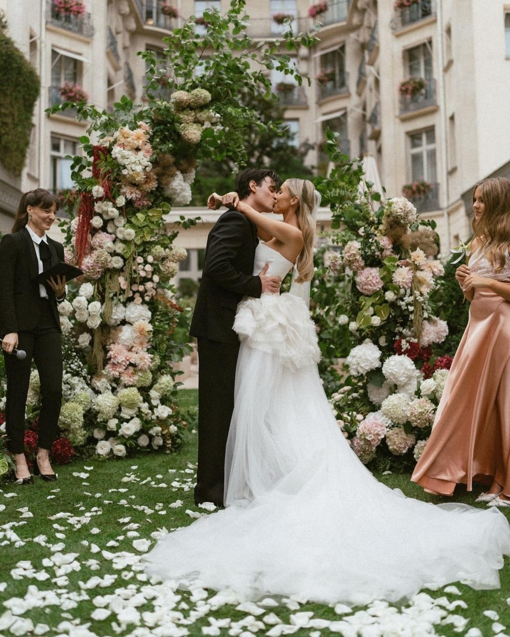 Betsy-Blue English’s wedding at The Ritz Paris was a dazzling affair that embodied timeless elegance and modern romance. The iconic venue set the stage for a celebration as grand as their love story, with a floral aisle that seemed to bloom straight out of a dream, guiding Betsy-Blue to her happily ever after. A towering multi-tiered wedding cake that was as opulent as it was breathtaking – a sweet masterpiece fit for the grandeur of the occasion. Every detail sparkled with sophistication, making this magical day at The Ritz an unforgettable symphony of love, style, and splendor.