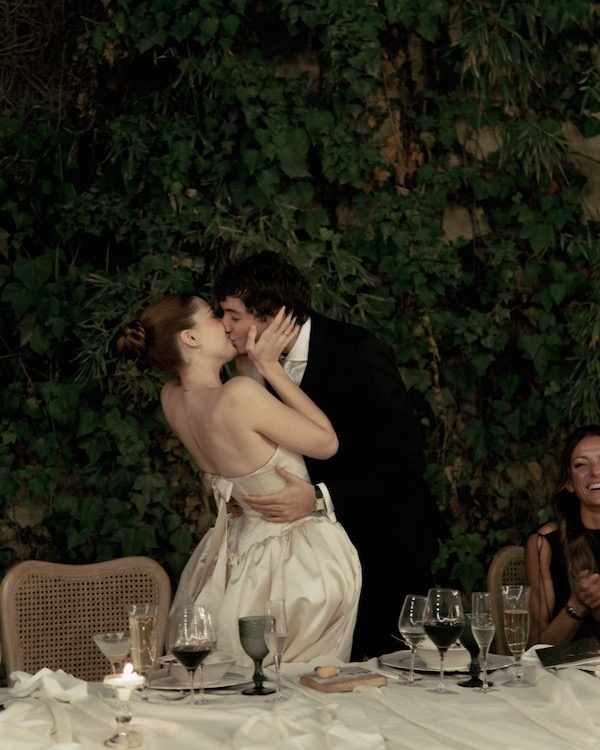 Whether your seats are nestled among guests or you’re tucked away at your own sweetheart table, this is your moment to pause and soak it all in. Between courses and conversations, a kiss shared here makes for a stunningly intimate shot—one that captures the softness of the moment and the spark between you. Photographer Abby Hart includes it on her list of must-have reception shots, saying: “A nice flash photo of the bride and groom kissing at the table. It’s nostalgic and classic.” Whether it’s a subtle, tender exchange or a full-on romantic embrace, it’s a frame you’ll want in your album.