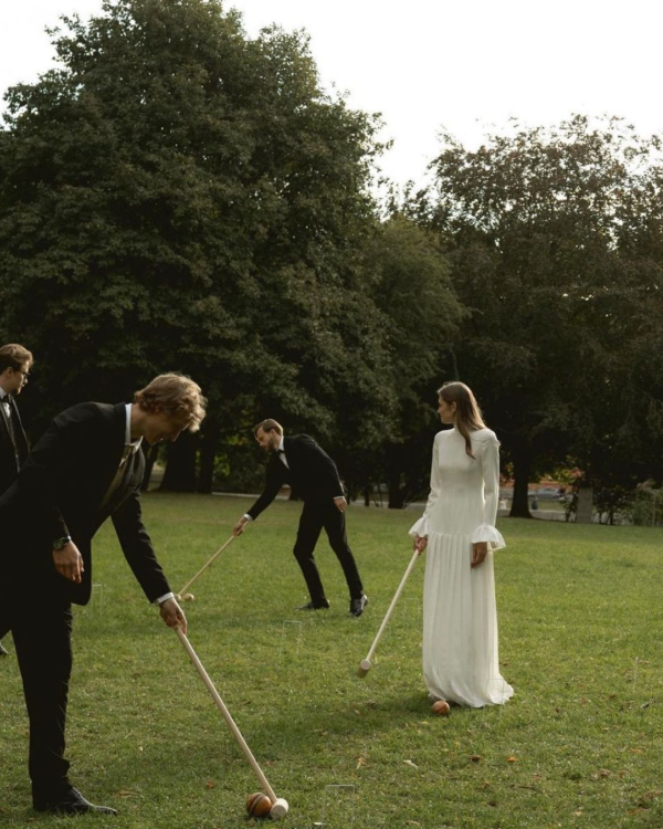 From lawn games to a round of pool, incorporating playful activities into your portraits brings out natural smiles and effortless energy. These moments go beyond traditional poses—think candid laughter, lighthearted competition, and your wedding party’s personalities on full display. Whether it’s cornhole on the grass or cue sticks in hand, these snapshots capture the fun, connection, and joy of simply being together.