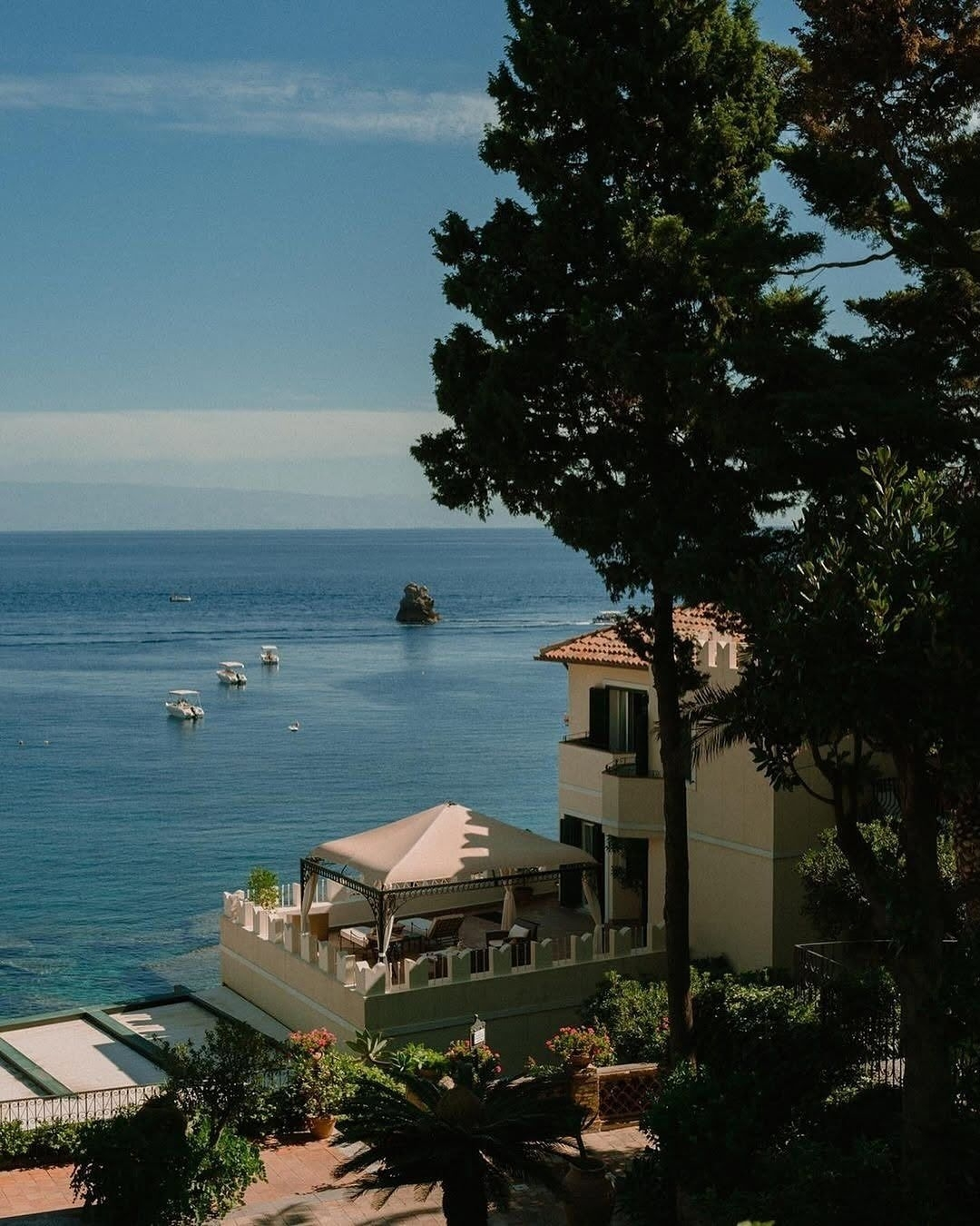 Perched right on the bay, Belmond Villa Sant’Andrea feels like a secret Sicilian dream. Once an aristocratic family's summer retreat, it’s now a lush seaside sanctuary wrapped in tropical gardens and bathed in Mediterranean sunlight. Imagine enjoying breakfast while overlooking the waves, relaxing in pure tranquility during the afternoons, and strolling through Taormina’s chic boutiques in the evening via the three-minute cable car. It's elegant without being excessive, making it perfect for couples who crave both serenity and style.