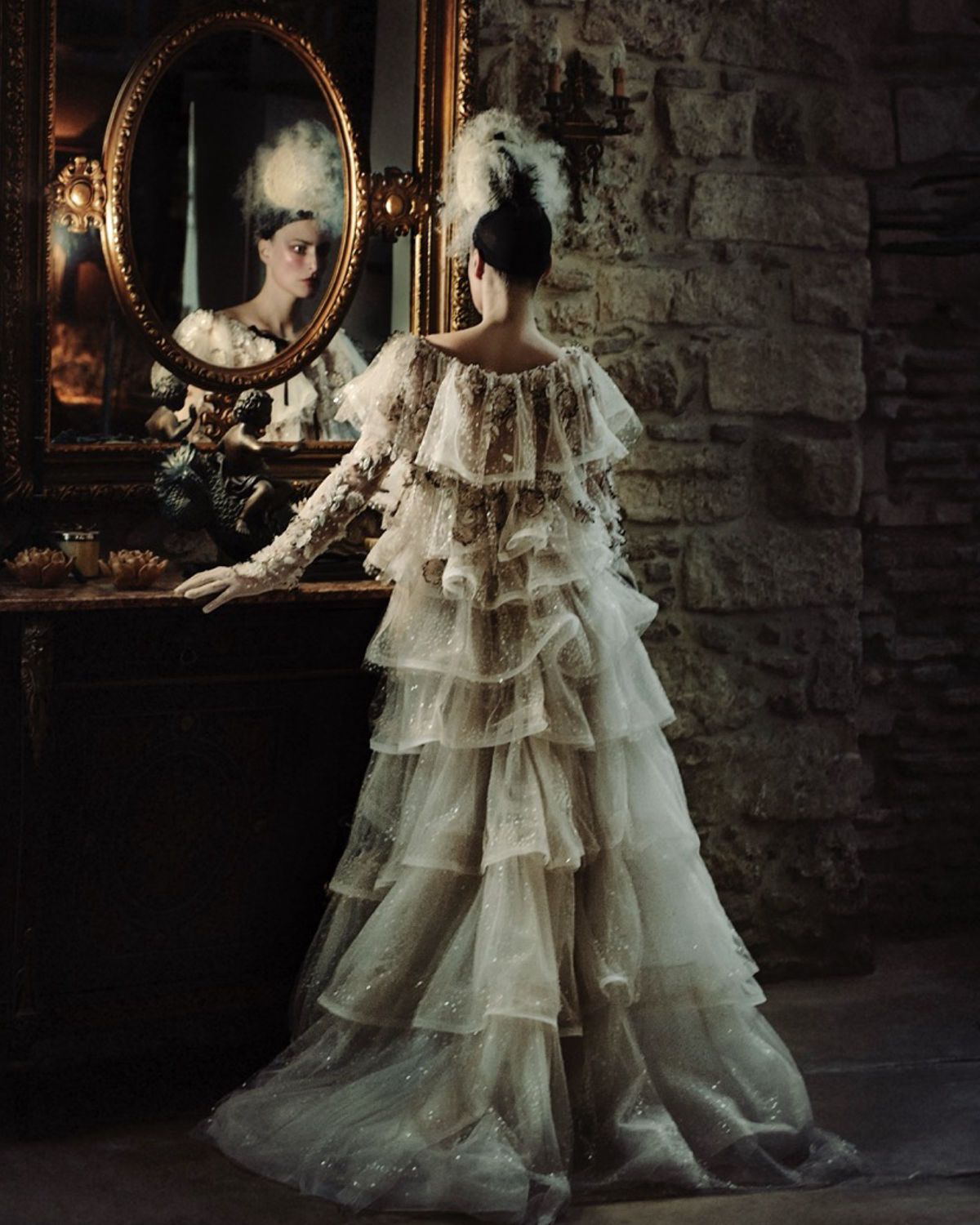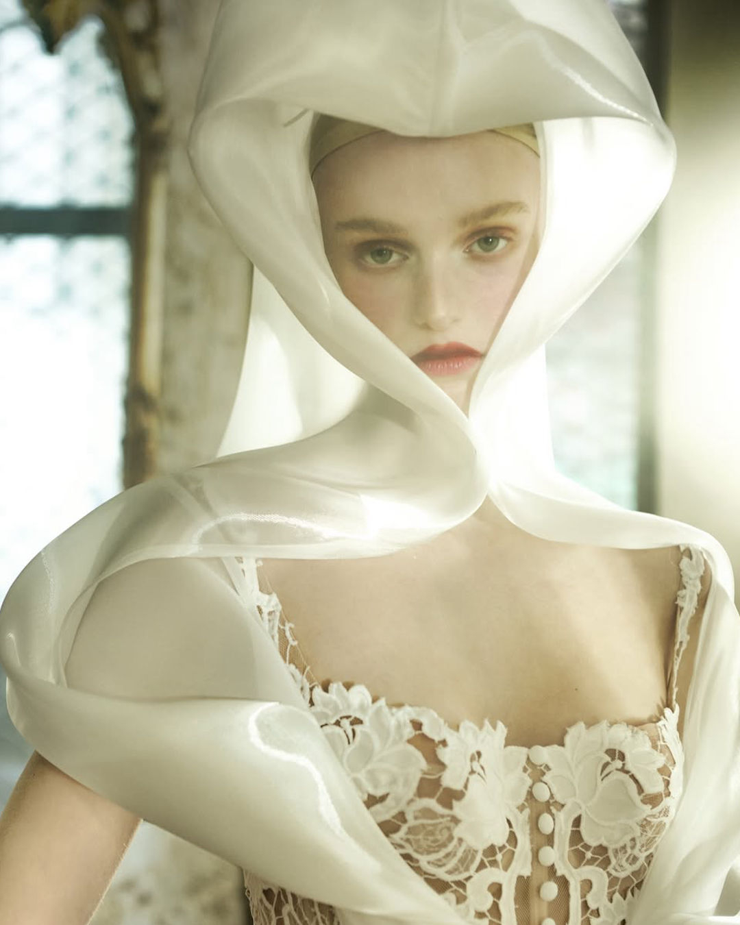 A whimsical yet elegant take on bridal unfolds through the distinctive vision of fashion designer Dimitra Antonea, captured by the evocative lens of photographer Signe Vilstrup. In this editorial, bold and daring pieces from the Antheia collection—crafted from airy, delicate fabrics with intricate detailing—are juxtaposed against the raw, mysterious backdrop of a private Athenian loft. The space, bathed in shadow and silence, becomes a canvas where contrasts flourish: softness against edge, tradition against rebellion.