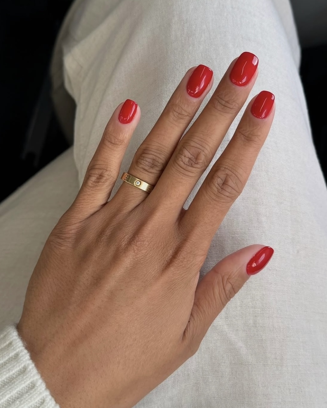 Red is a classic and timeless color choice for nail designs, especially for New Year's Eve parties and shoots. Symbolizing passion, energy, and vibrancy, red nails are the perfect way to make a bold and striking look as you welcome the new year. A simple, glossy red manicure is a go-to choice for New Year's Eve. Opt for a high-shine, classic red polish for a sophisticated and elegant look that will complement any outfit, whether you're attending a formal event or celebrating at home. For a chic and festive touch, consider adding gold accents to your red nails. Whether you choose to incorporate gold glitter, metallic stripes, or embellishments, the combination of red and gold exudes luxury and opulence, making it perfect for the holiday season. To mix party and casual choose matte red nails. This understated yet stylish finish adds a modern touch to your red manicure. Whatever your preference, red nail designs are a timeless and versatile option for New Year's Eve 2025.