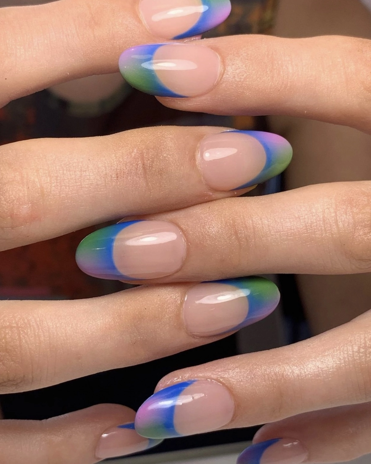 Since summer the trend for nails to match the color of your own aura has not stopped. The idea behind this design is to repeat on the nails a circular pattern with a gradient under the color of the aura — the energy covering that surrounds each person. Each energy has its own hue. You can combine different types of aura, mix the colors to suit you or, for example, ask your loved ones to define them for you. Red, for example, symbolizes an energetic nature, while violet is intuitive and empathic.