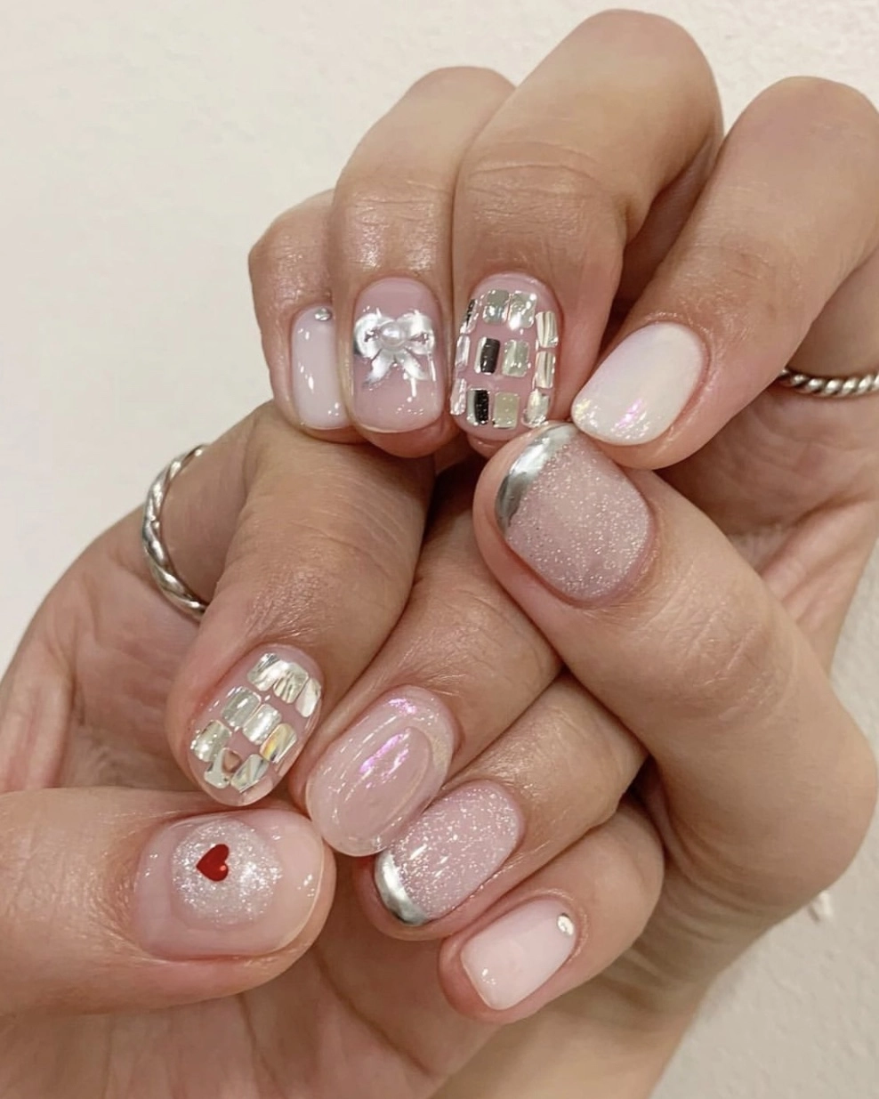 The appeal of shiny nails lies in their ability to catch and reflect light, creating a captivating and multidimensional visual effect. Whether it's a high-gloss metallic sheen, iridescent holographic sparkle, or bold glitter accents, these finishes add a touch of opulence and festive flair to many nail looks.This trend allows for versatile applications, ranging from full coverage shiny metallic nails to strategic glitter accents, allowing individuals to personalize their manicures with a touch of shimmer and sparkle. Whether you opt for a soft and subtle version or a bold and statement, this nail trend offers endless possibilities for embracing the spirit of celebration on an every day basis.