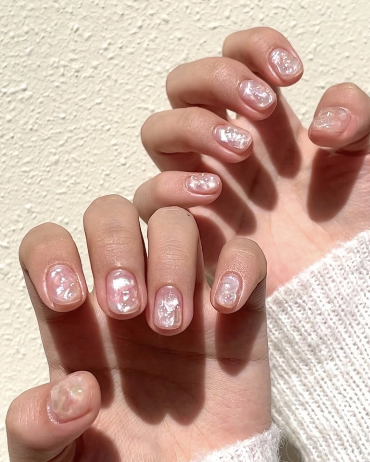 Nude nails, ‘lip gloss’ or glazed nails are going to be huge in 2024, offering a timeless and chic option. This elegant trend embraces a spectrum of skin-toned shades, from soft beige and creamy camel to rosy blush and rich cocoa, providing a perfect match for every individual's complexion. The understated elegance of nude nails makes them a popular choice for those seeking a sophisticated and polished look without sacrificing style. Nude nails are celebrated for effortlessly complementing various outfits, making them a go-to mani idea. Whether you opt for a classic nude or experiment with a translucent finish, nude nails exude a sense of refined simplicity and natural beauty.