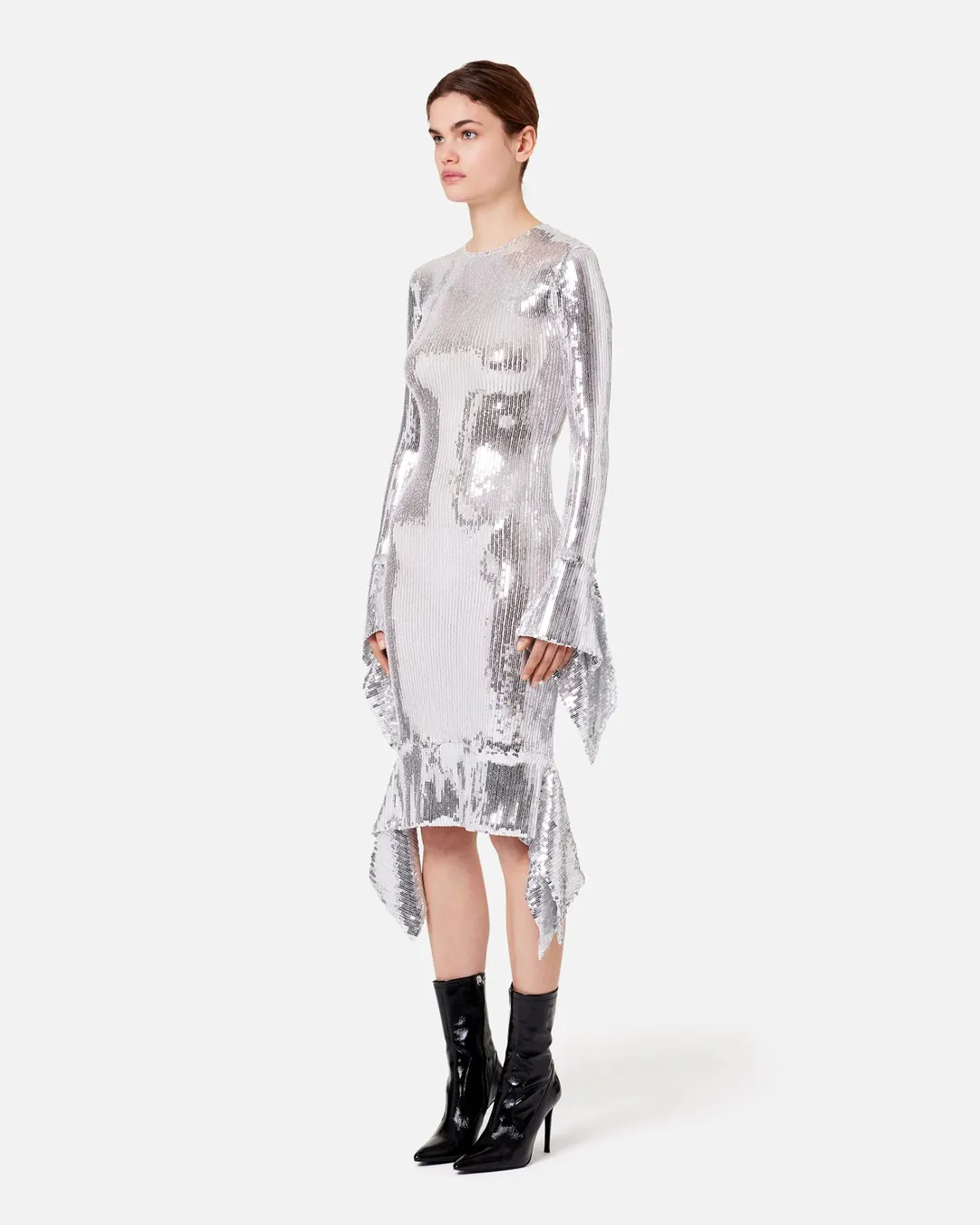 Ami Sequined Ruffled Dress, $698