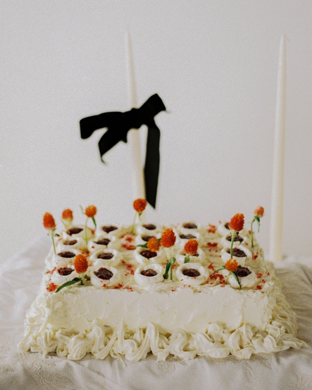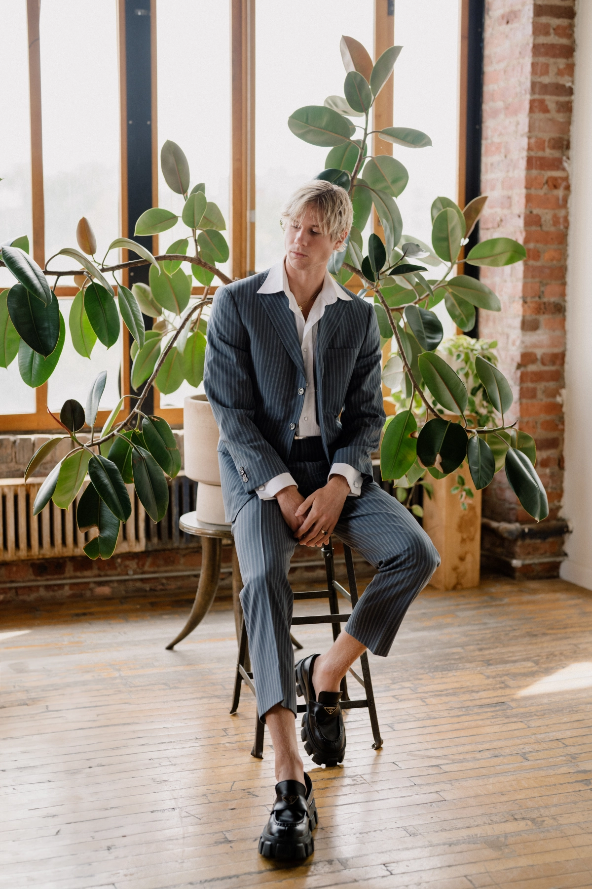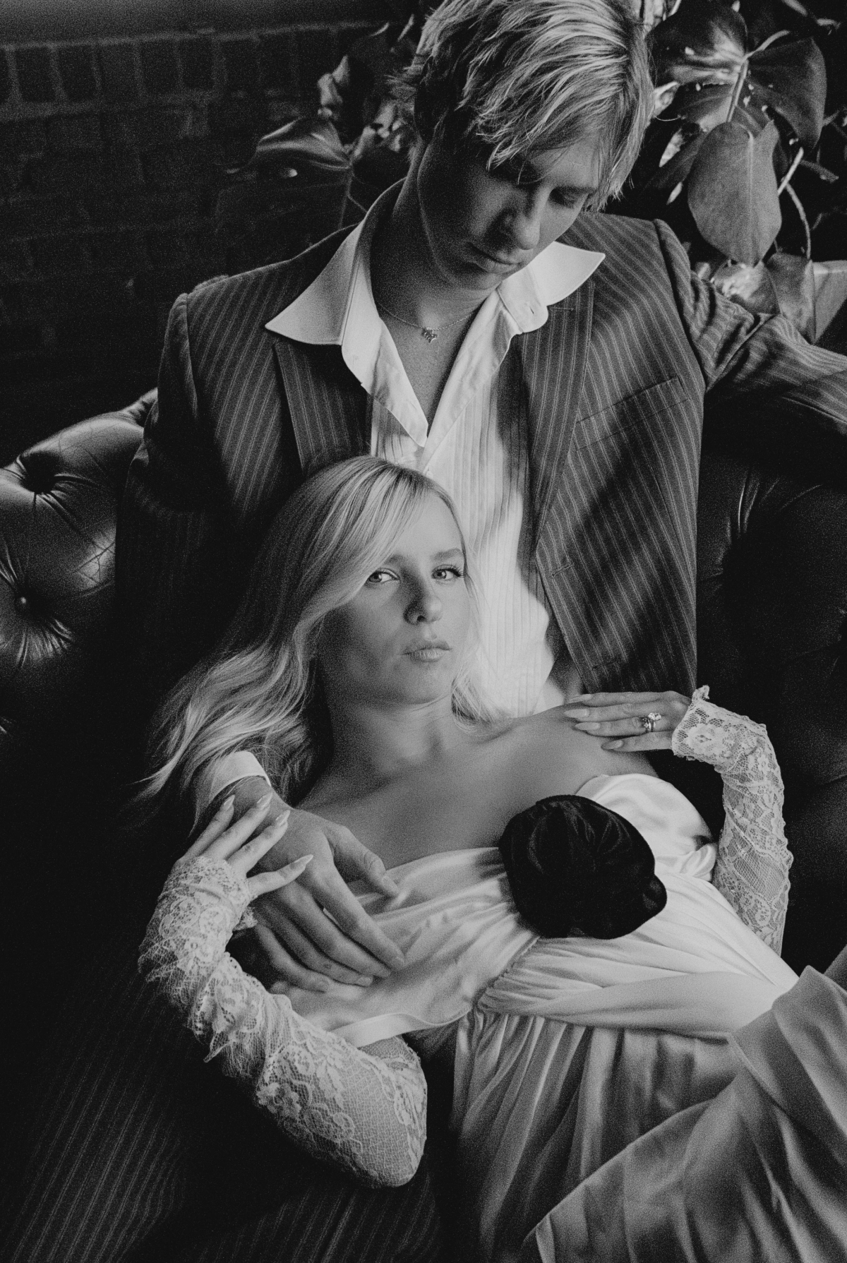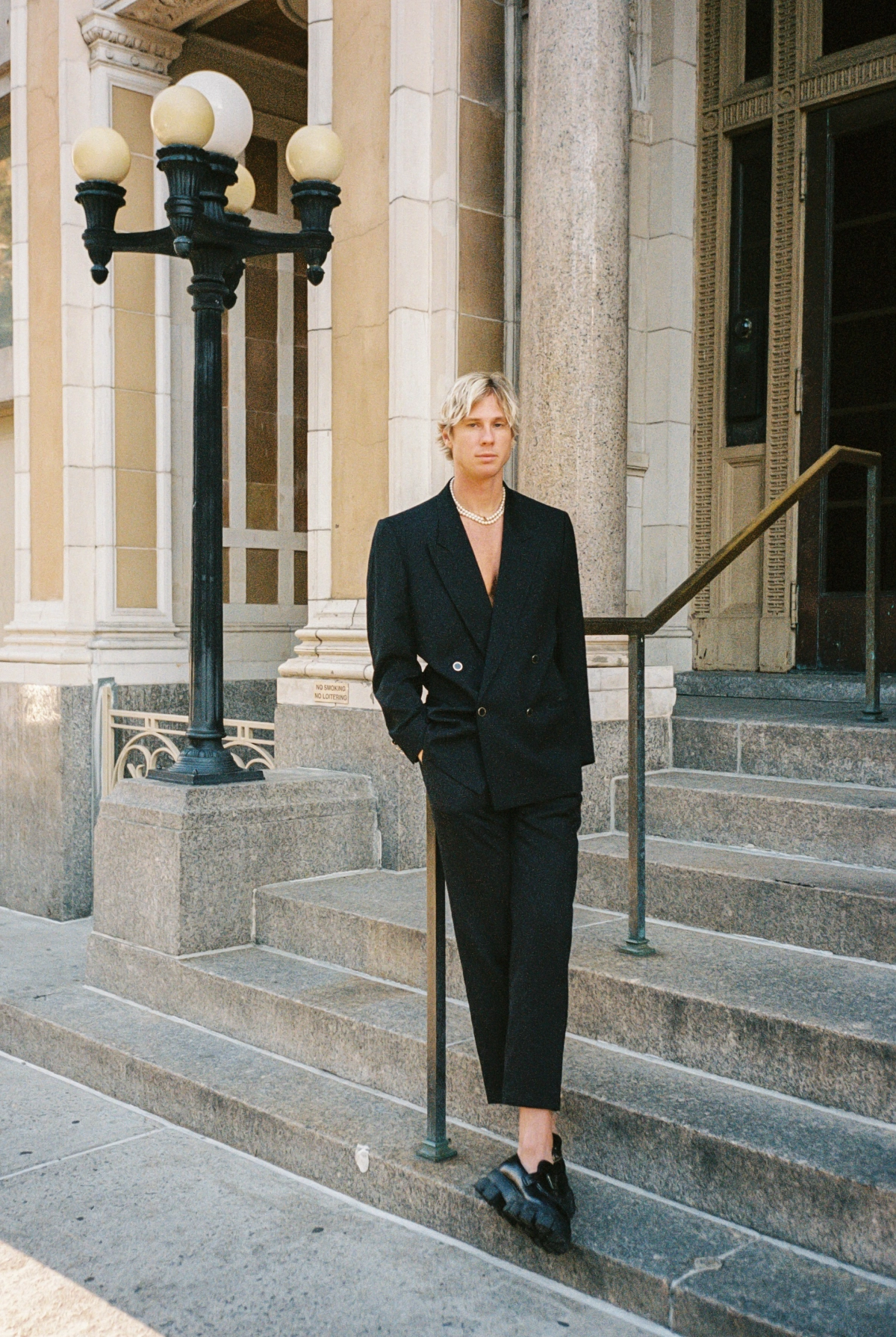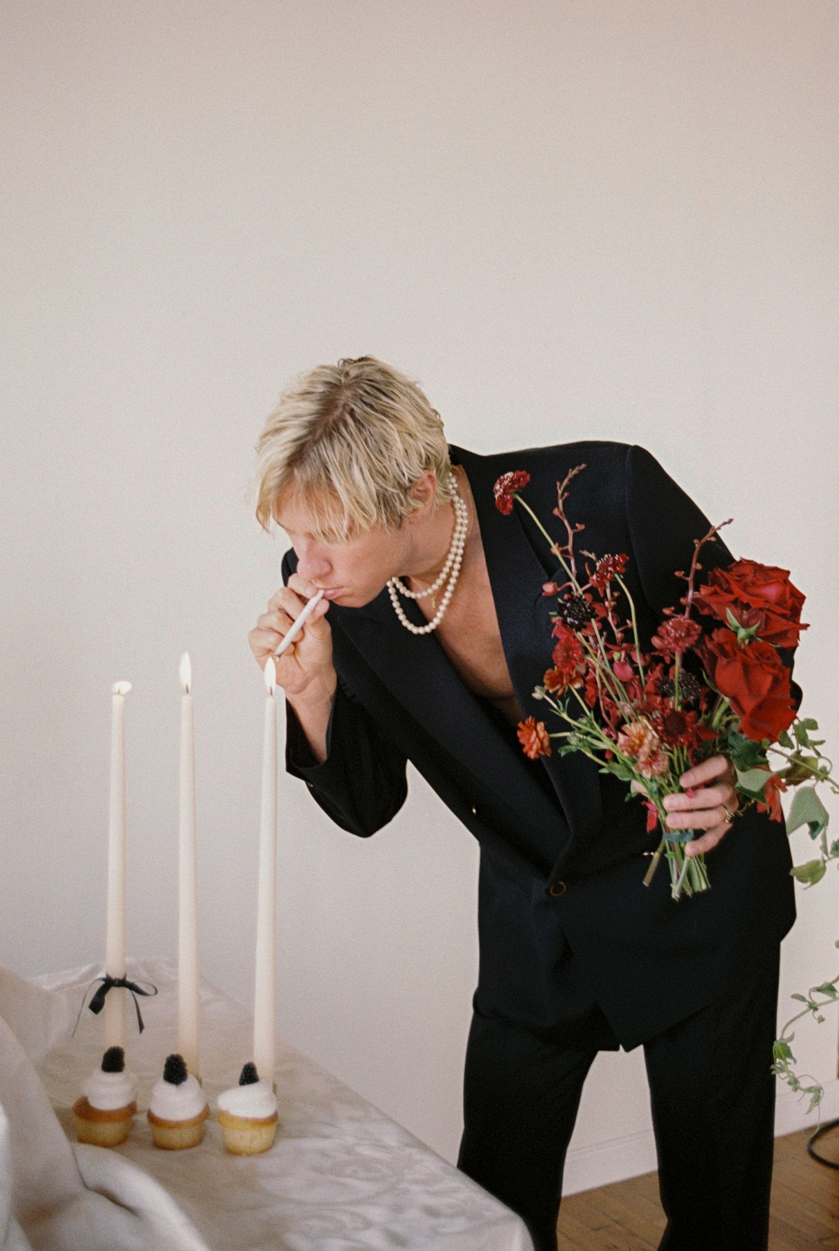 “Our favorite moment from the shoot is definitely when we decided Brody would hold the bouquet and pose next to the table, faking to light a cigarette with a candle. This picture summarizes everything — the fashion, the boldness, and the laid-back Brooklyn vibe. We could almost hear Lana Del Rey’s song in our ears — it was perfect”, shared Angelika.
