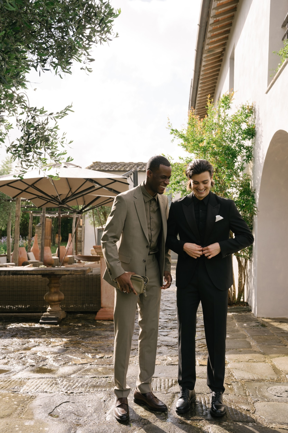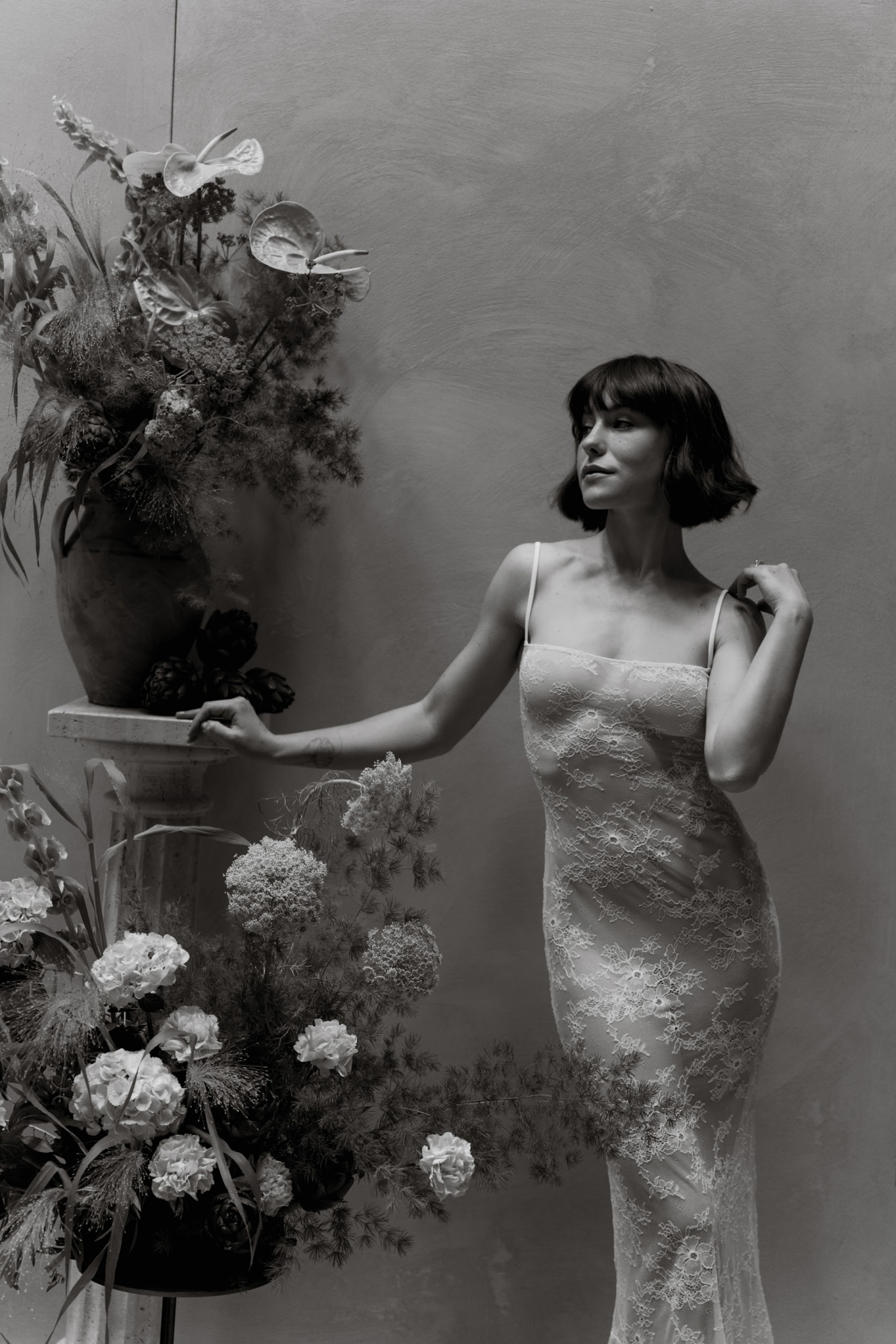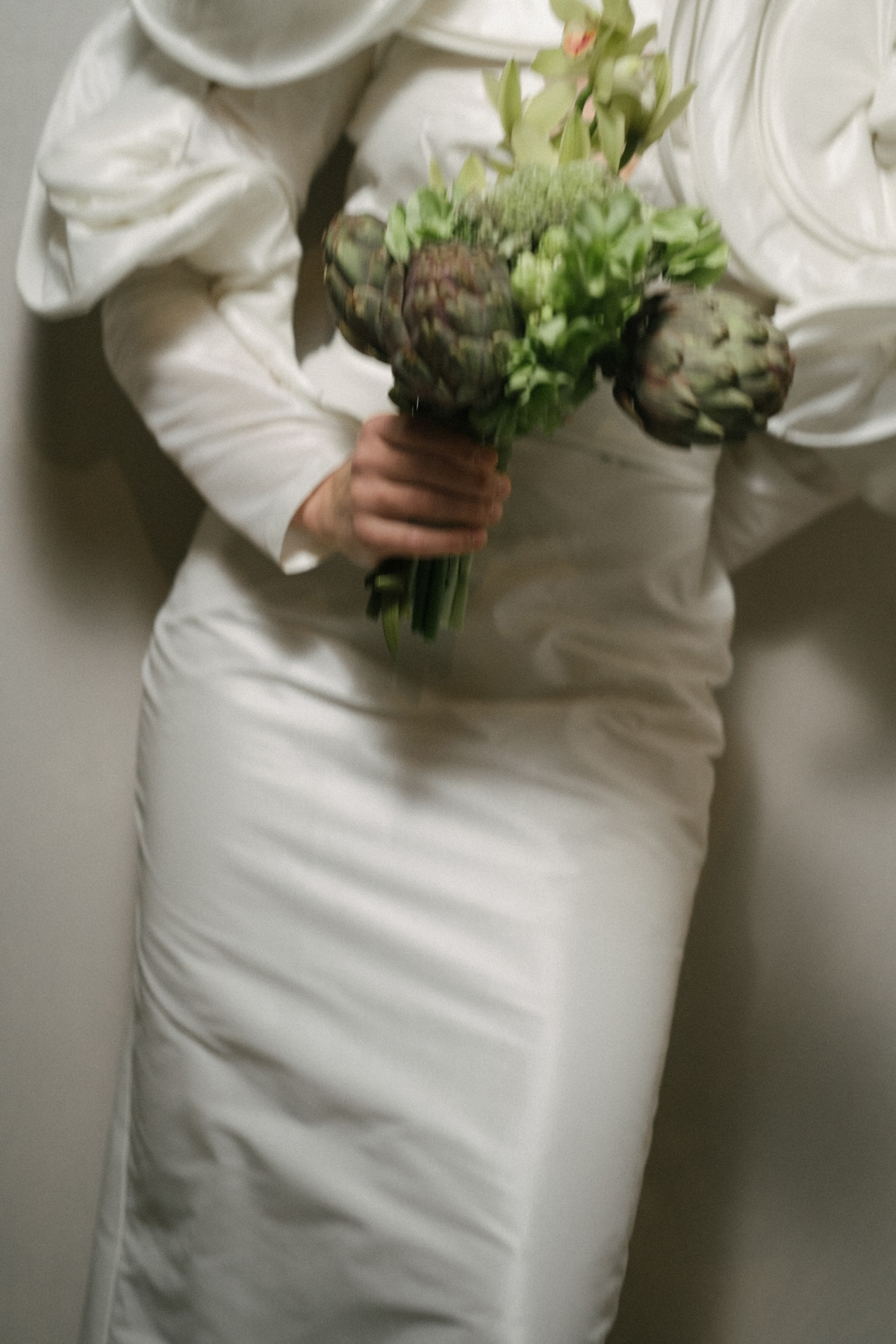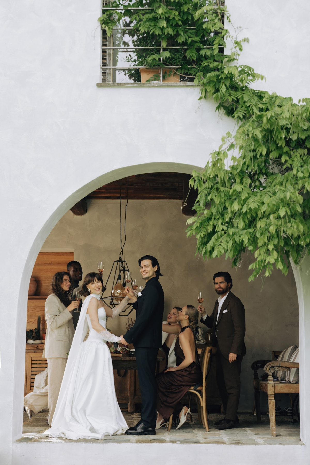 Amongst the luscious, verdant olive groves of O:live Villa Firenze, two lovers share a moment of pure raw intimacy. Our latest editorial captured through the artistic lens of Polina Yarmush, Danilo and Anastasiya posed in a serene, dreamlike setting, elegantly adorned with delicate fabric and subtle floral accents. Every detail as thoughtfully curated as the next, from the bride's contemporary monochromatic bouquet of artichokes, lunaria, and anthuriums, to the poetically styled ceremony and the couple's contrasting looks, a reflection of their modern style and creative spirit. Against Florence's panoramic vistas, the vision continues with an intimate terrace-set reception, culminating in a traditional Italian wedding cake — a warm and welcoming finale to a day filled with romance.
