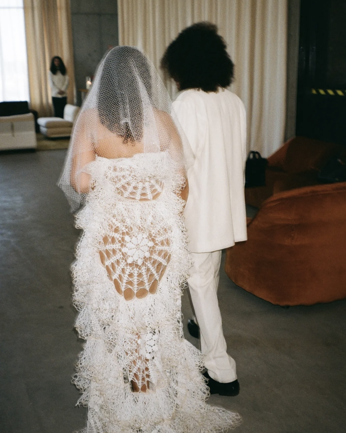 Harris and Eitan's wedding was a truly special and intimate affair, held at Chelsea Old Town Hall. Harris looked effortlessly elegant in a white silk low-cut top and matching tailored trousers. He had tried to strike a balance between feminine and masculine and the result was stunning. Eitan, on the other hand, looked dashing in a classic suit that complemented Harris's outfit perfectly. The couple walked down the aisle to Sufjan Stevens' "Mystery of Love" from the Call Me By Your Name movie, a song that held special meaning for them. A luxurious, intimate reception at Claridge's, where tables were adorned with exquisite floral arrangements, elegant long candles and a tiered buttercream cake, served as a symbolic finale to the enchanting day. Most recently, the couple celebrated a bigger wedding in Sicily at Villa Tasca, where Harris was the epitome of a gender-fluid bride. The combination of an elegant suit style with romantic and flowing lace skirt made his look absolutely perfect.