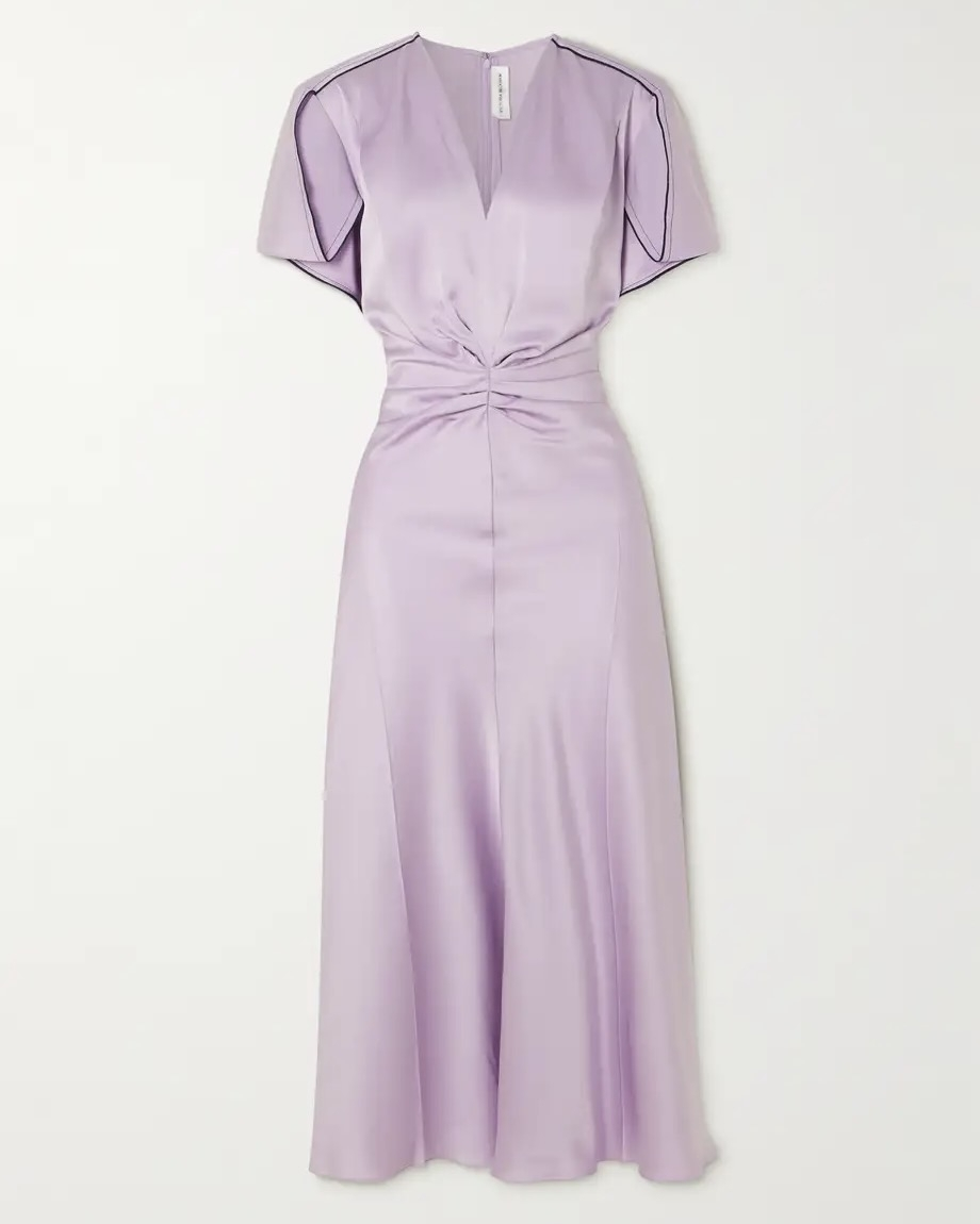 Victoria Beckham Gathered V-Neck Midi Dress, $1,190