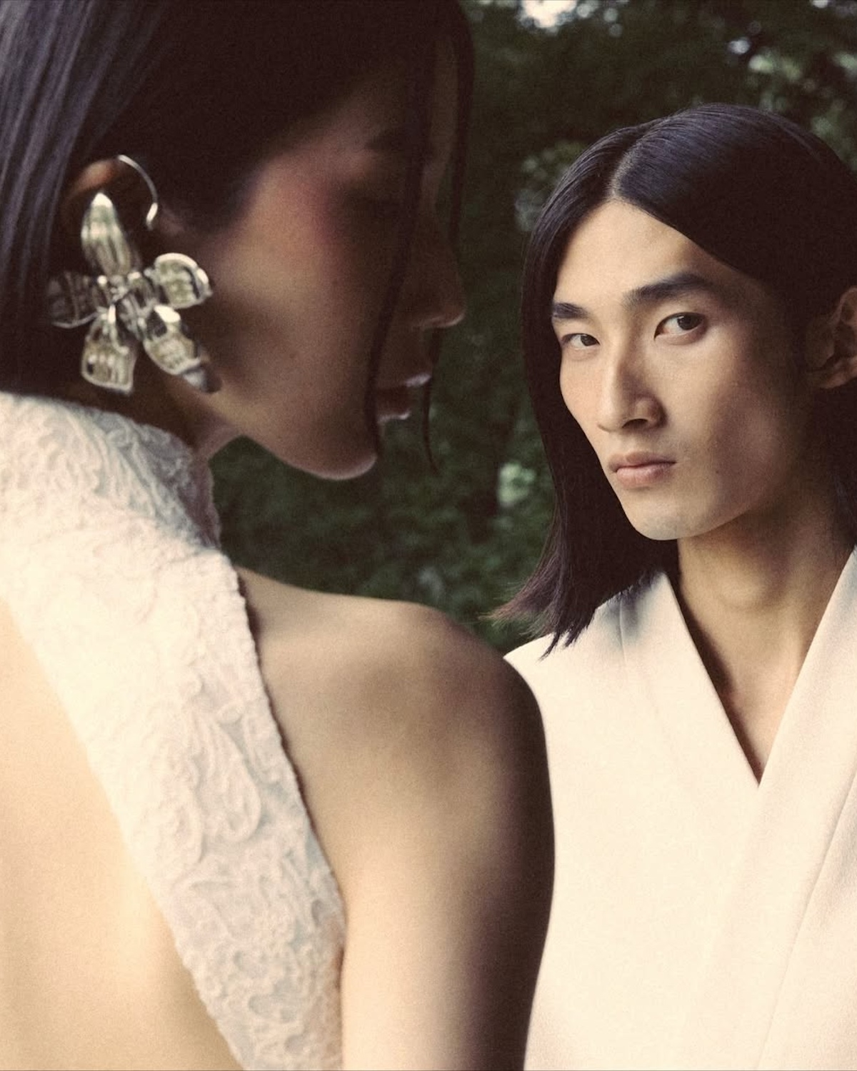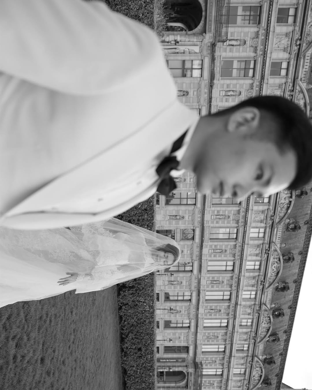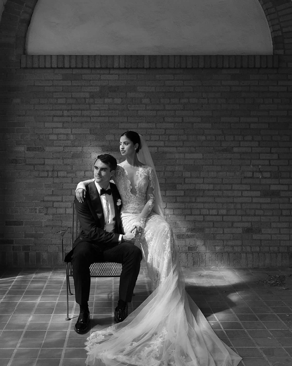 Facing opposite directions gives your portrait an immediate editorial edge, letting each partner claim their own space while still telling one story. That small bit of separation adds structure and intention, bringing in a subtle tension that feels fashion-first—unexpected, graphic, and visually bold. The best part? The pose is easy to pull off, but the impact reads anything but minimal.