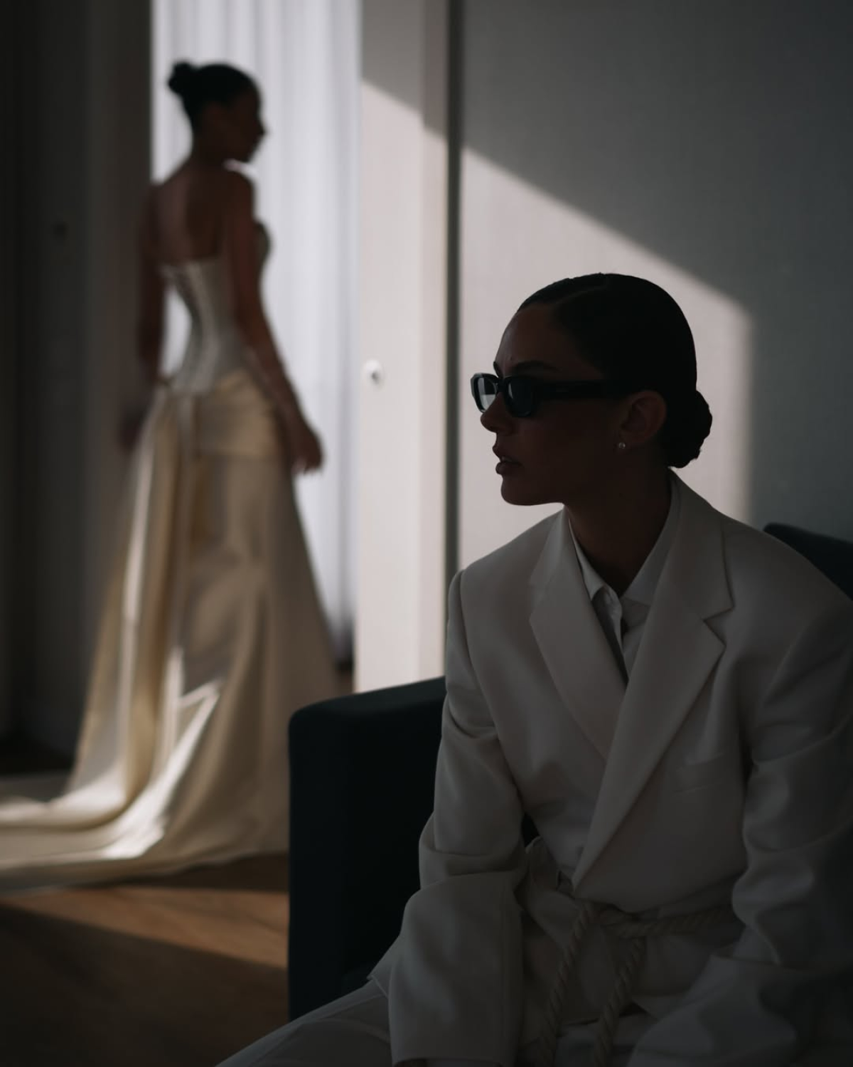 We’re obsessing over silhouette portraits, and this one deserves a prime spot on your visual board. As sheer fabric softens the light, the couple becomes a play of shape and shadow, shifting the focus away from detail and toward mood. The shot feels dreamy and abstract, with just enough mystery. It's romantic without trying too hard and intimate without being obvious. “Creating some mystery brings intrigue to portraits and keeps things interesting in between the classic and movement moments,” says luxury wedding photographer Brittany Boote.