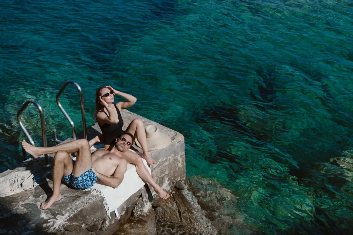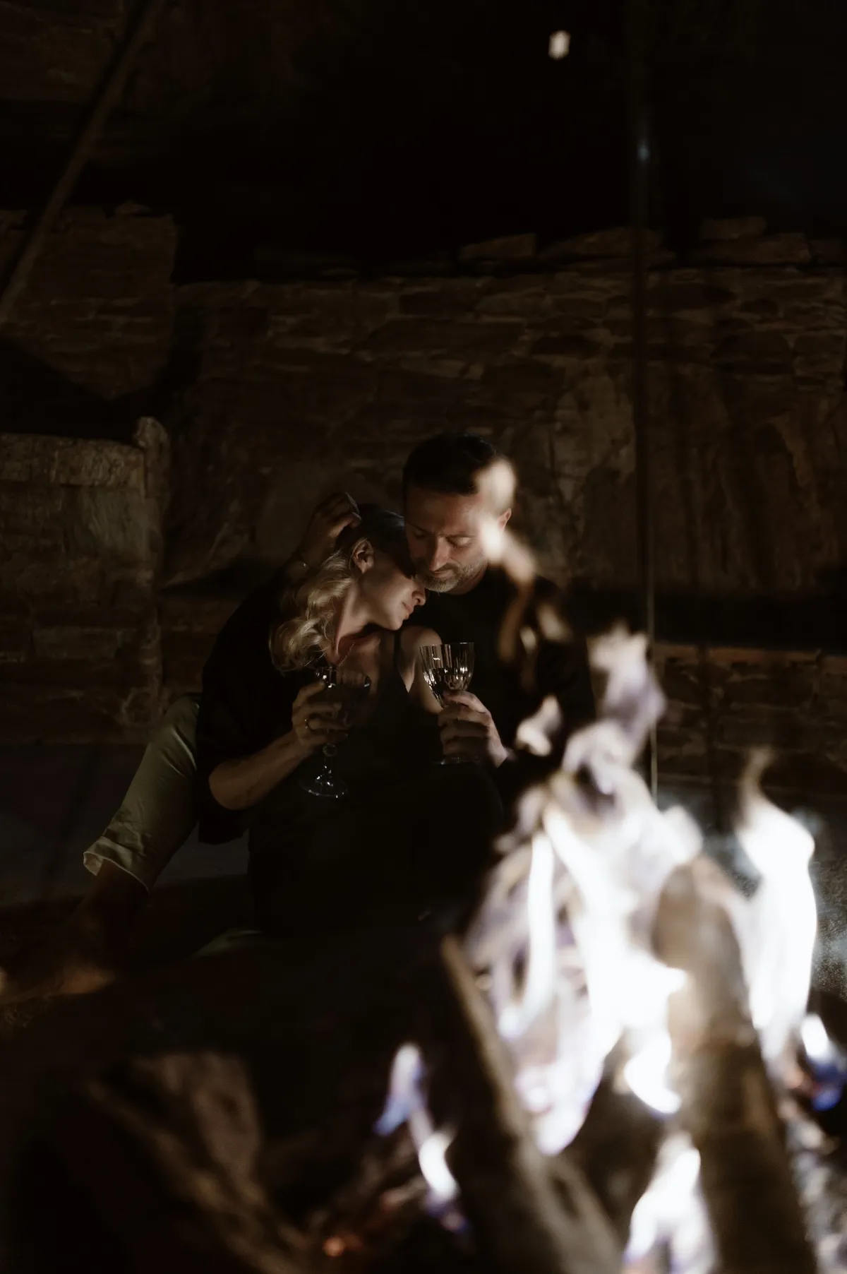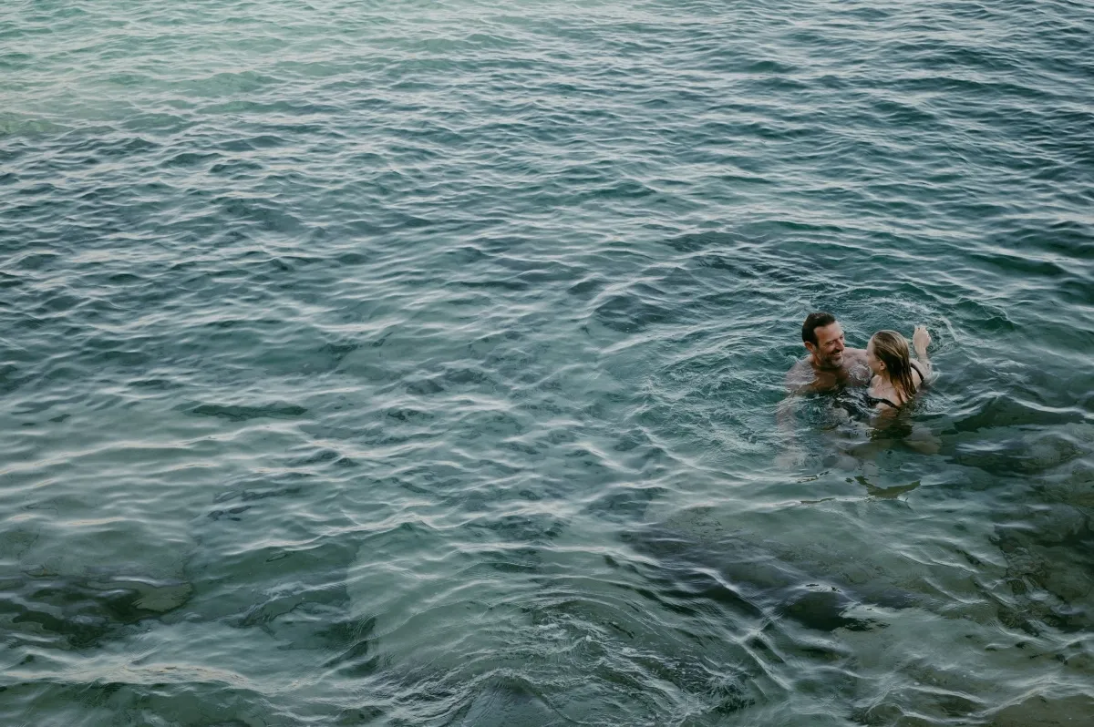 Dreamy pre-wedding photoshoot of THE WED member Anna Roussos and her groom, photographer Thanos Asfis. The two are enjoying each other on the shore of the Aegean Sea. After a day at the beach, they move to a campfire to spend a romantic evening there. A full day of warmth and love was captured by photographer Nastya Nikolaeva!