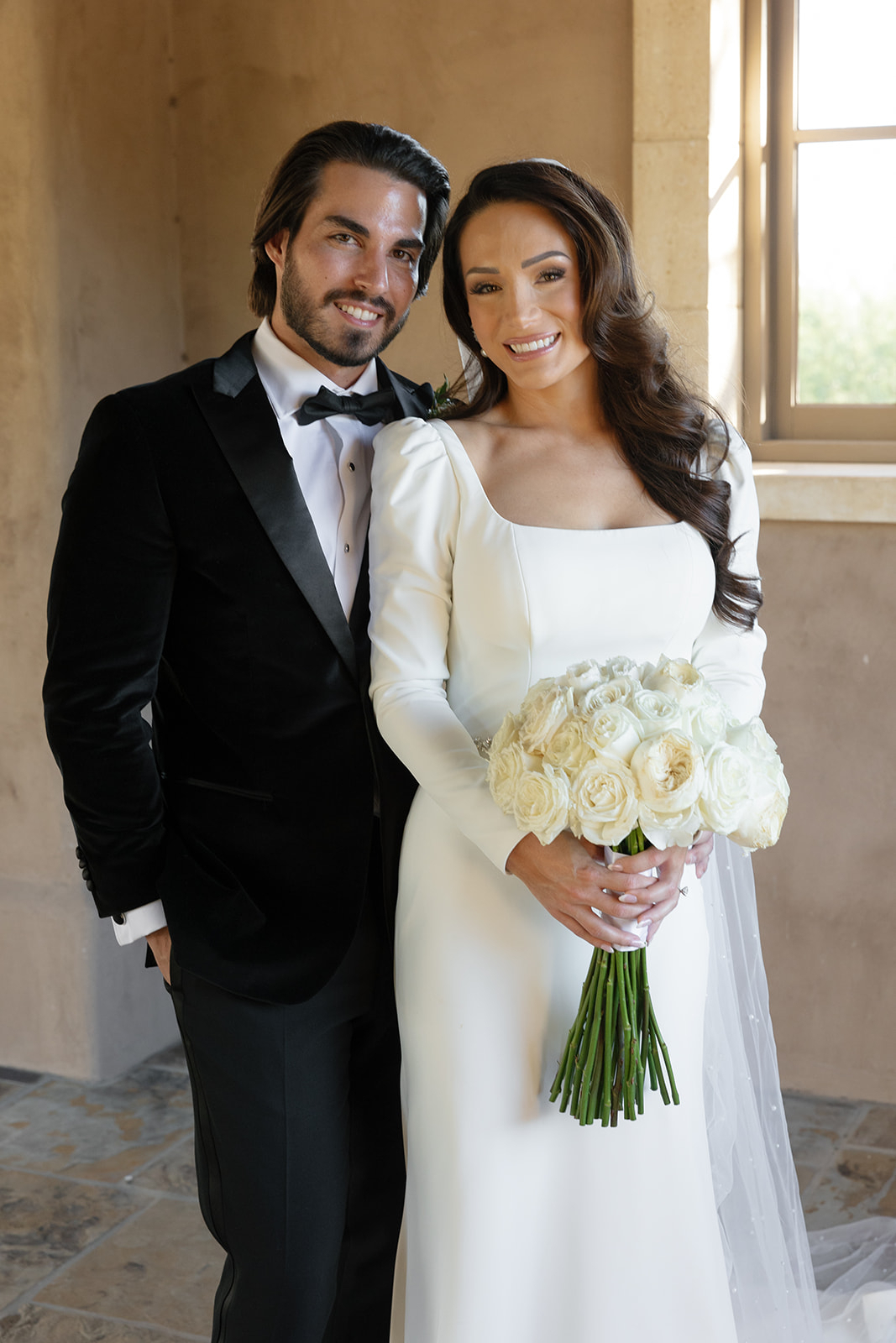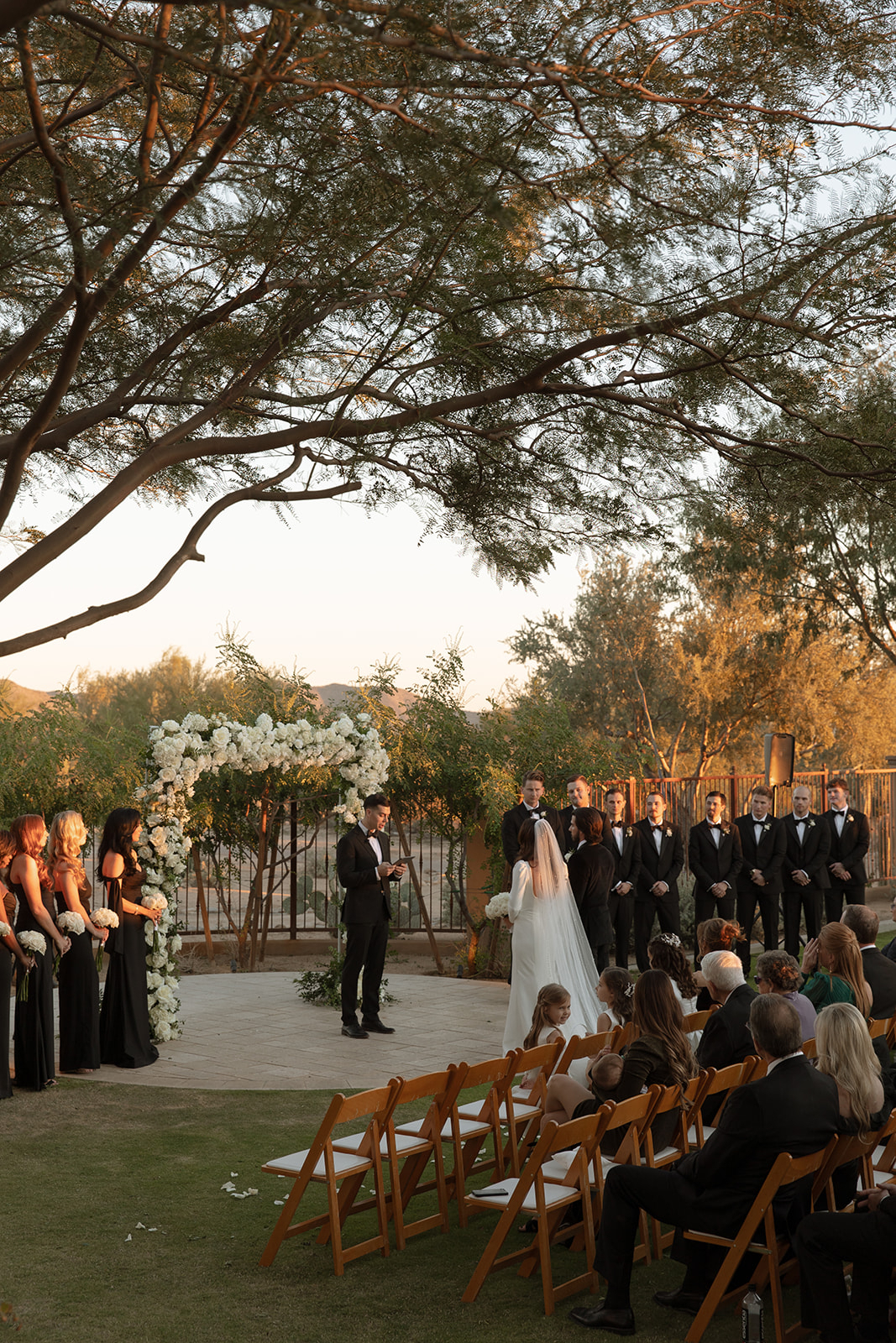 Jaqueline and Jason live in DC but wanted to celebrate their wedding in their hometown of Scottsdale AZ. They hosted their ceremony at the country club at DC ranch which offered a spectacular view of the mountains and romantic sunset lighting. They celebrated their reception at the Scottsdale Hangar one which is such a unique space. It's an old airplane hangar and the entire interior is a stunning ruby red. Jacqueline was Miss Arizona 2019 and she has since become the founder of Lady Leaders which is an organization that empowers and mentors women to become the best versions of themselves to reach their goals toward success. The day was filled with glamour, romance, and incredibly fun company. See the details in Kyla Jeanette's editorial.