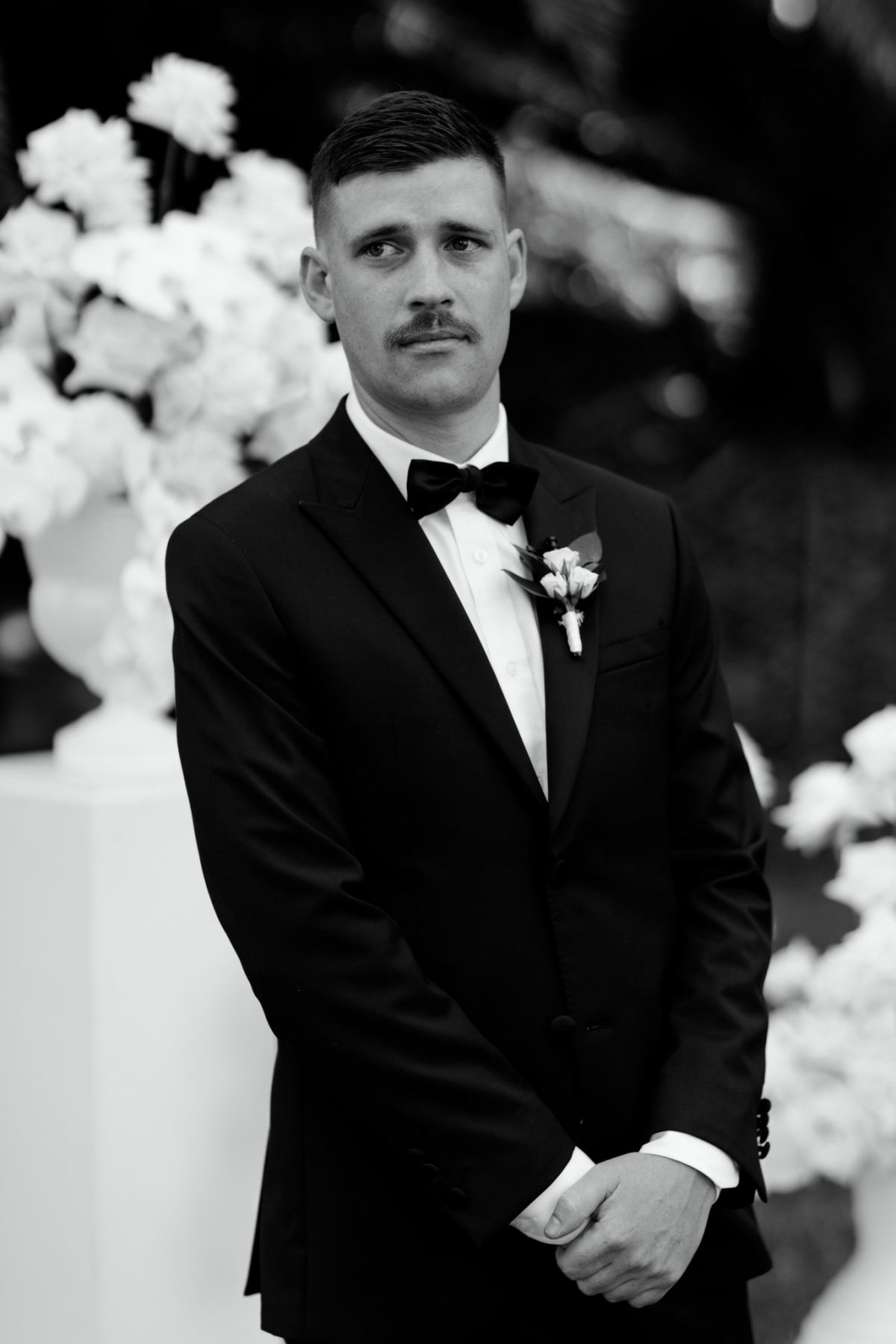 I have always loved classic and timeless weddings that were not exactly “on trend” but would also never date. Since I was little, I have been obsessed with soft florals and in particular white roses. White roses always reminded me of both of my grandparents and their gardens so they have always felt special to me. Also as a bride-to-be, you tend to become captivated by weddings found on Instagram and other platforms. Every wedding with classic florals, bridesmaid dresses, and groomsmen’s suits just stood out to us. Our overall look was soft, white florals with a white and black-tie theme. I just feel like it was perfect for both of us. We aren’t really the type to do anything “wild” or out of the ordinary. It really suited our personalities.
