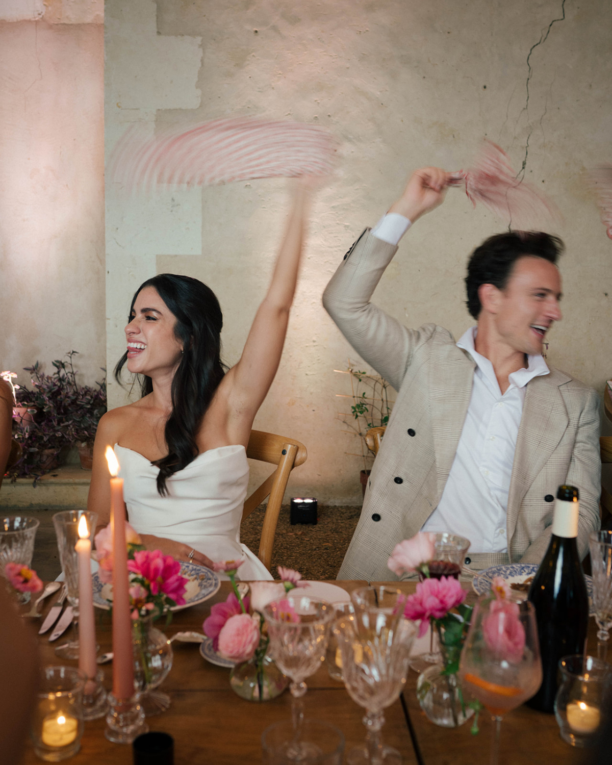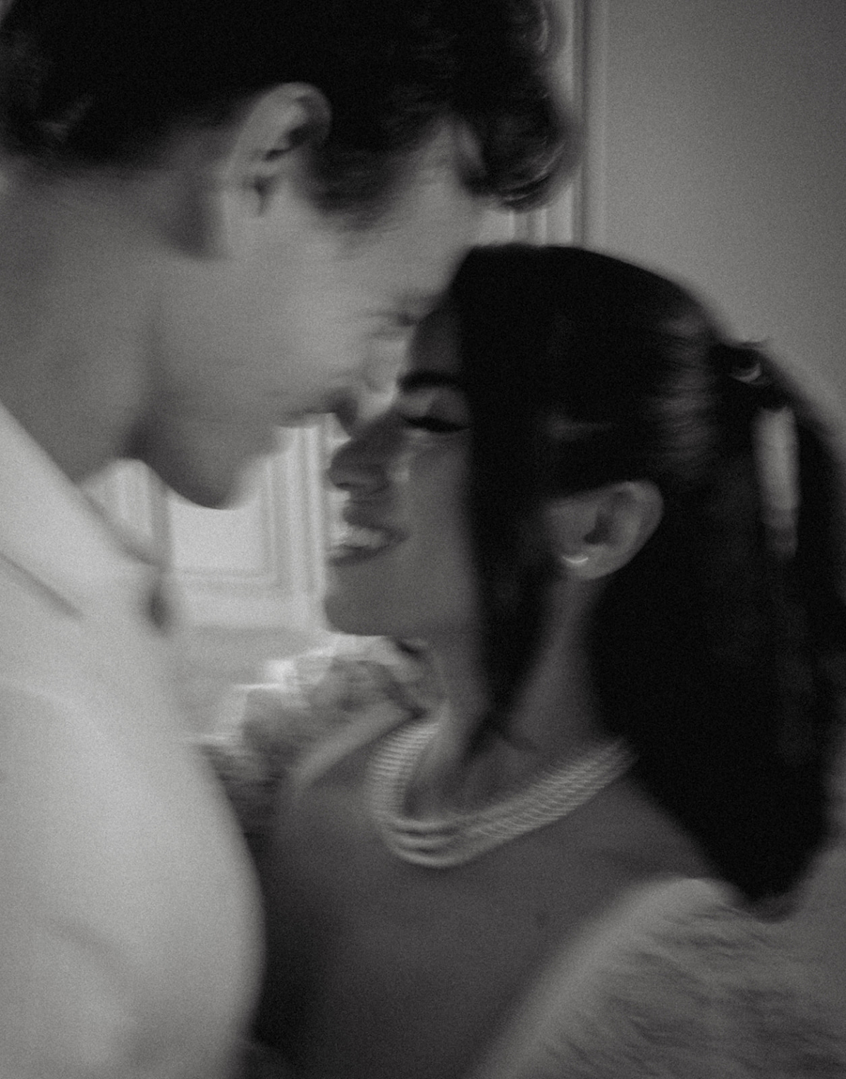 Our ceremony was in the front garden of the chateau, right out of a French storybook. It felt romantic and traditional, so I decided to add boldness with unexpected music. Instead of the conventional wedding instrumentals, Michael and our wedding party walked down the aisle to Bittersweet Symphony by the Verve. Then, through the front entrance as the doors slowly opened, Big Jet Plane by Angus and Julia Stone played as I walked down the aisle with my dad. It was perfect. It was an intimate moment, surrounded by all the people we love, in our favorite place.