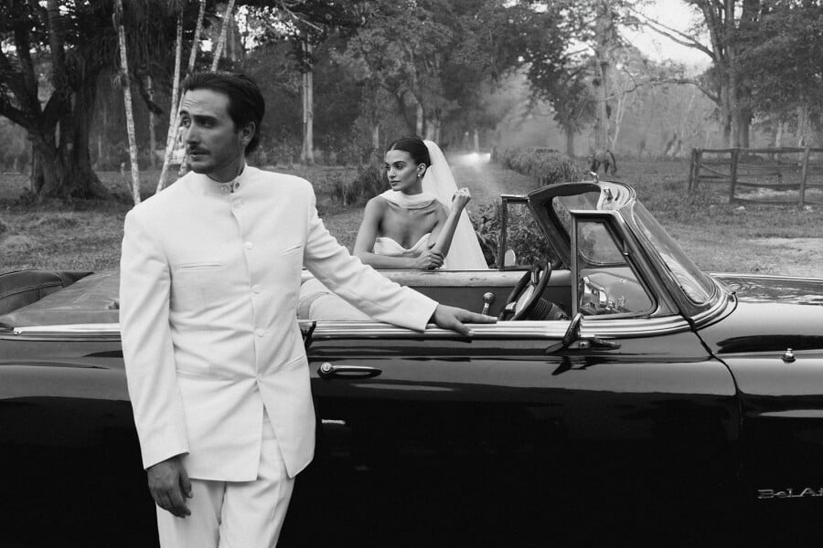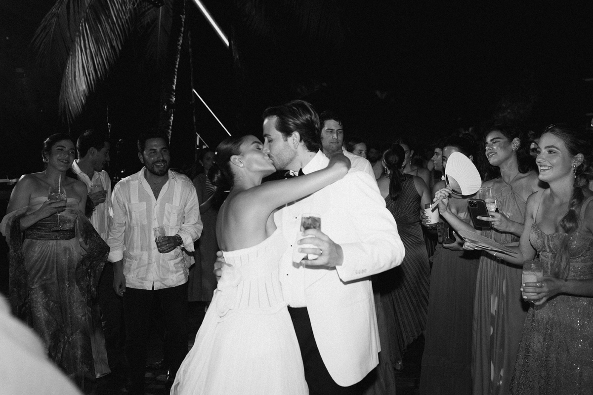 The most memorable moment from our wedding day was undoubtedly the ceremony itself. Picture this: surrounded by towering royal palm trees, we found ourselves immersed in an ethereal cathedral shaped by nature itself. As if scripted by fate, local wildlife joined us, with monkeys swinging through the branches, exotic birds soaring overhead, and majestic peacocks adding their splendor to the scene. However, the true magic unfolded when the band, in a moment of serendipity, unveiled a song my husband had penned six years prior — a heartfelt tribute to our journey through adversity and the unyielding love that bound us together. His unfinished melody found its completion that day, resonating with the depth of our shared experiences and the promise of forever. Then, Francisco surprised me again with a soul-stirring speech, weaving words of love and devotion that moved us all to tears. Not to mention how special it was to see our dearest friends and family gliding down the aisle, adorning the path with their affection, love truly hung in the air, mingling with emotions too profound to articulate. It was a day suffused with beauty, where every element harmonized to create an atmosphere of sheer bliss and undeniable enchantment. Truly, it was a day where love reigned supreme, and the vibrancy of life itself danced in celebration around us.