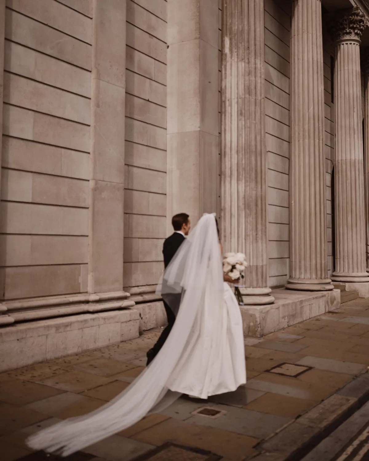 In the evening, I changed into the timeless Malibu slip dress from Galvan. I paired this with the prettiest pink organza ruffled gloves from Ukrainian brand, Daily Sleeper. I felt the gloves really elevated my look and were a nod to my girly personality. To be transparent, I was reluctant to change out of my ceremony dress, but I am so glad I did! At around 9 pm once I had changed, Lewis and I went for a walk outside with our photographer. The City felt so still, as though it was just the three of us there, and these happen to be some of my favourite photographs. In the evening I was mostly barefoot, dancing on the vintage Persian rug.