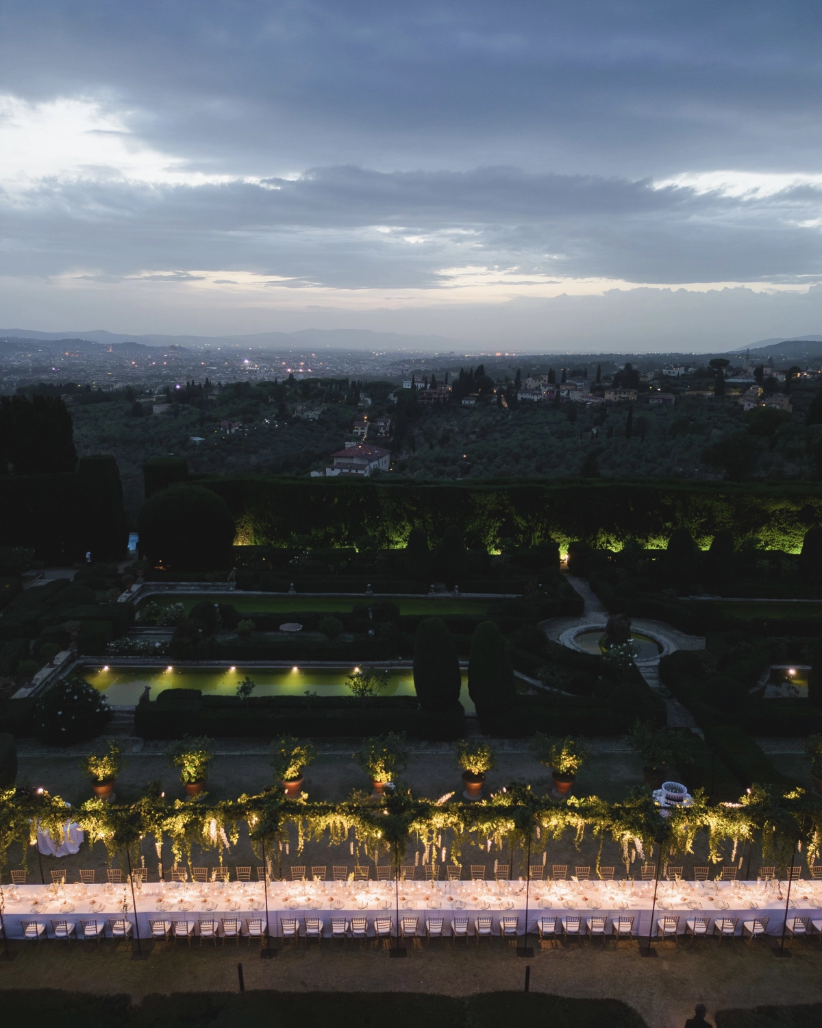 We knew we would get married in Tuscany, that's where we took our first trip together, it's our happy place. However, finding the right location turned out to be more difficult than we expected. We visited at least 10 different villas. Nothing really impressed us until Villa Gamberaia, a beautiful 1600s Tuscan villa nestled in the hills overlooking Florence. The view was very special, and there was something so powerful about that place surrounded by imposing cypress trees. We also liked the idea of having both the ceremony and the reception outdoors. The villa's countless spaces would allow us to continually surprise guests with something new as they moved from one area to another throughout the evening.