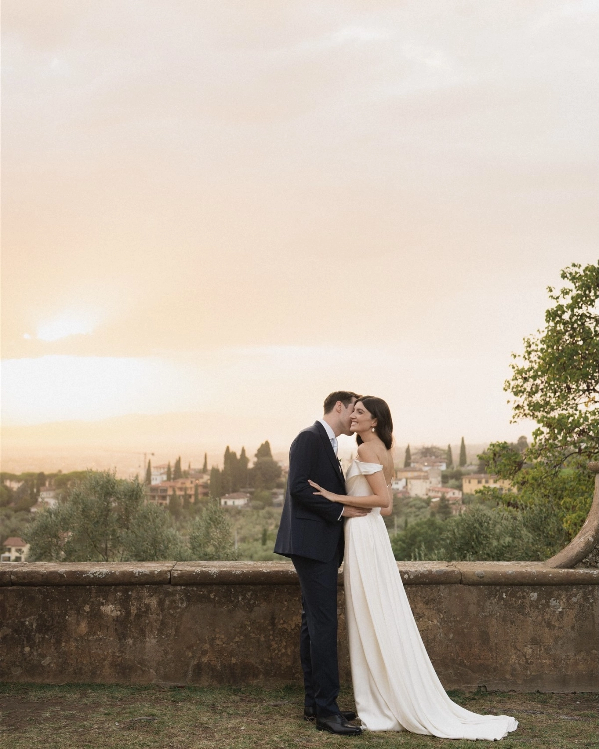 Having your wedding in the place where your first trip together took place is a dream for many. Anastasia and Stefano had a wonderful bridal experience at a stunning villa in Tuscany on the hills overlooking Florence. An outdoor ceremony and reception, an abundance of white flowers in the décor, live music — read below and learn about a destination wedding planning from the bride.