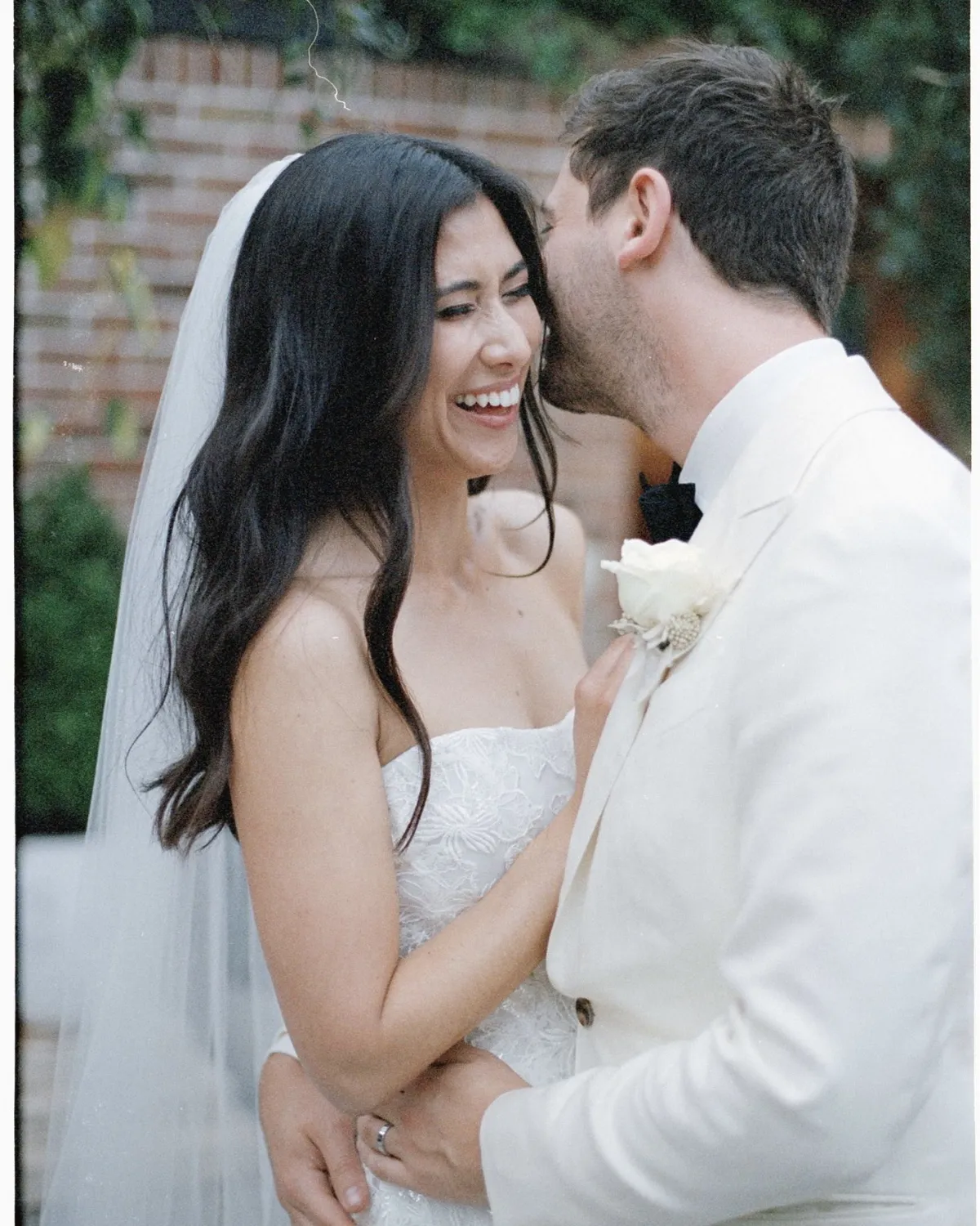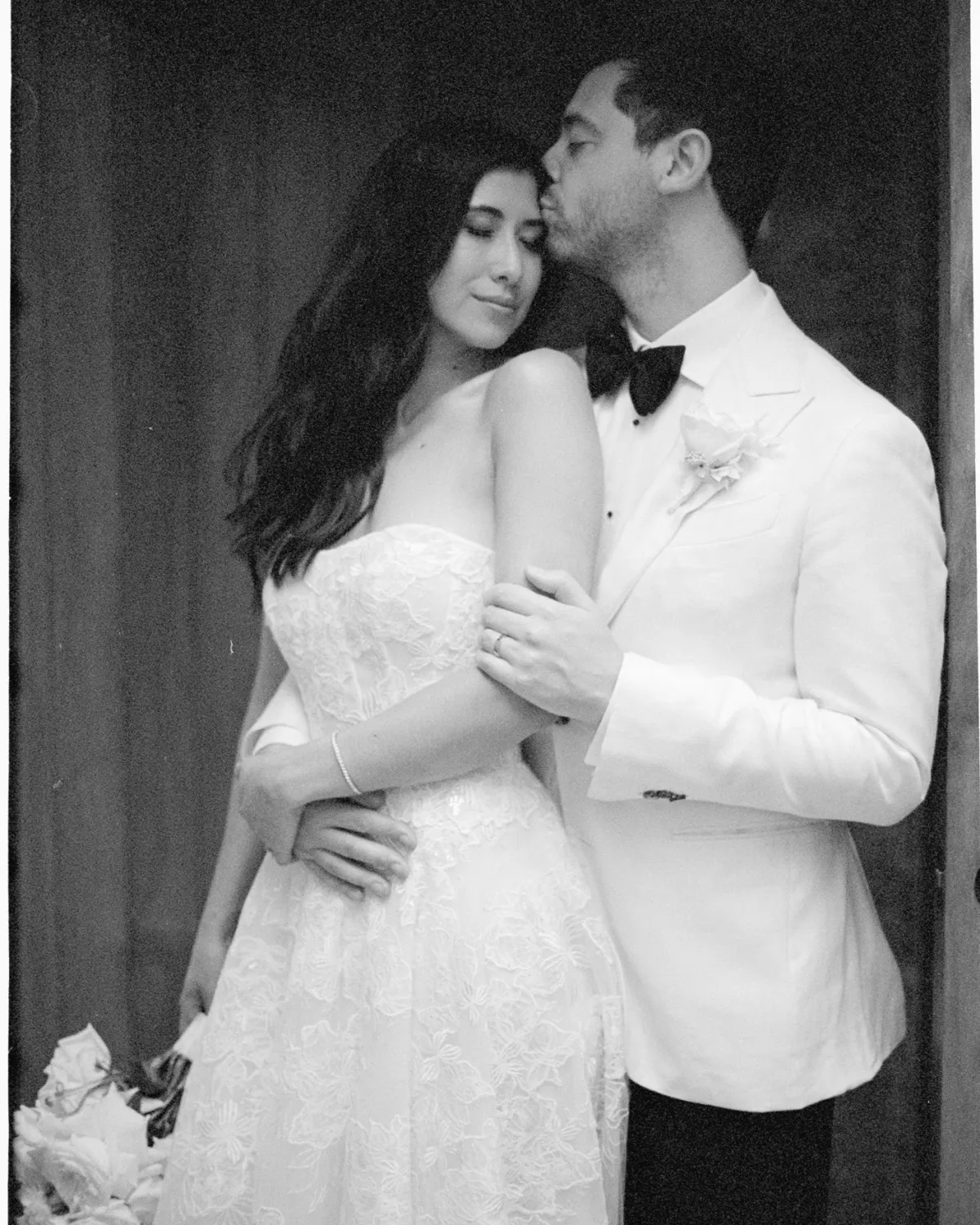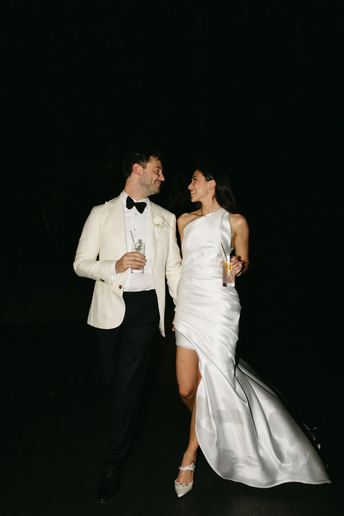 Louis had his suit custom made by The Cloakroom in Brisbane. His jacket was an off white with a subtle herringbone finish, paired with black trousers and dressed up with a tuxedo shirt and silk bow tie. My ceremony dress was a custom design from Ella Moda, also a designer in Brisbane. Whilst I knew I wanted something romantic and traditional, I never seemed to find a dress that had everything I was after. When I came across Ella Moda, it was a dream come true. I was able to select elements from a few different dresses I liked, and the wonderful ladies pulled them together into one custom gown. My reception dress was a Marquise bridal gown which I had customised into a one shoulder dress. I wanted this dress to feel chic, fun and something that I could dance the night away in! I paired my reception dress with shoes by Manolo Blahnik which added the perfect sparkle to the outfit. Finally, for jewellery I wore my mum’s diamond earrings and a tennis bracelet Louis gifted me the morning of our wedding.