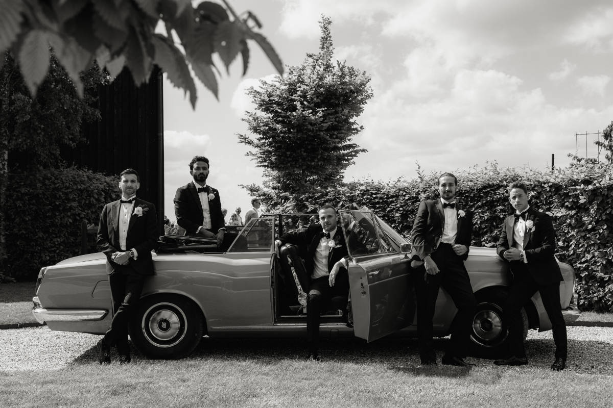 To incorporate "something blue," Mike arrived at the venue with his four groomsmen in a vintage Rolls Royce Corniche. We rented the car from Webbs of Weybridge, adding a touch of classic elegance to our special day.