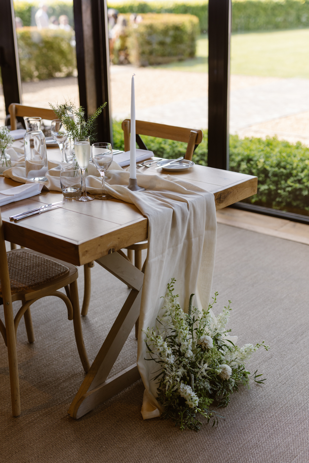 For our florals, we opted for fresh and neutral tones, incorporating white flowers and plenty of green foliage to reflect the natural beauty of the surrounding Cotswolds countryside. The bridesmaids' dresses also followed a neutral palette, featuring various shades of champagne. This choice, paired with black-tie suits, added an elevated and refined touch to our country wedding.