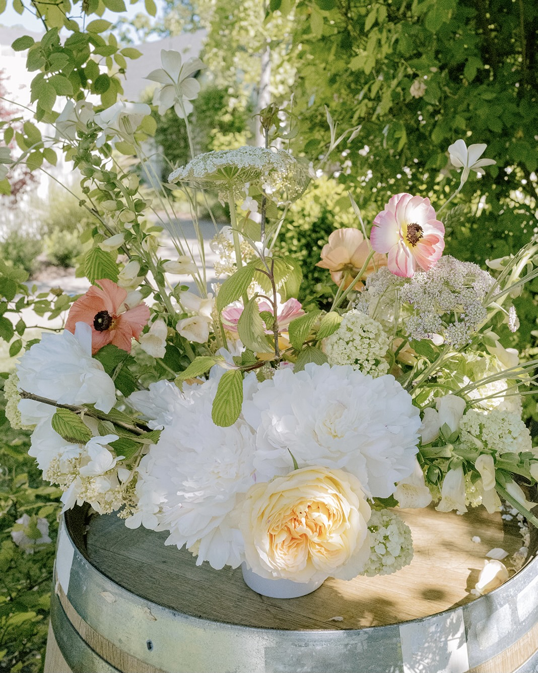 I think everything revolved around the concept of a garden party — I am happiest when I’m working in my garden, so I think I was naturally drawn to inspiration that reminded me of it. I spent a lot of time searching things like “English garden party” and “cottage garden wedding decor” on Pinterest! When we first walked up to MacArthur place, there were flowers blooming everywhere, and we just immediately knew it was the one. There ended up being even more flowers in bloom at the wedding than when we toured! We got so lucky and every rose in the courtyard was blooming that weekend!
