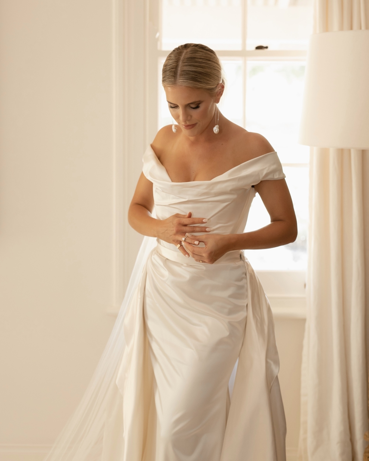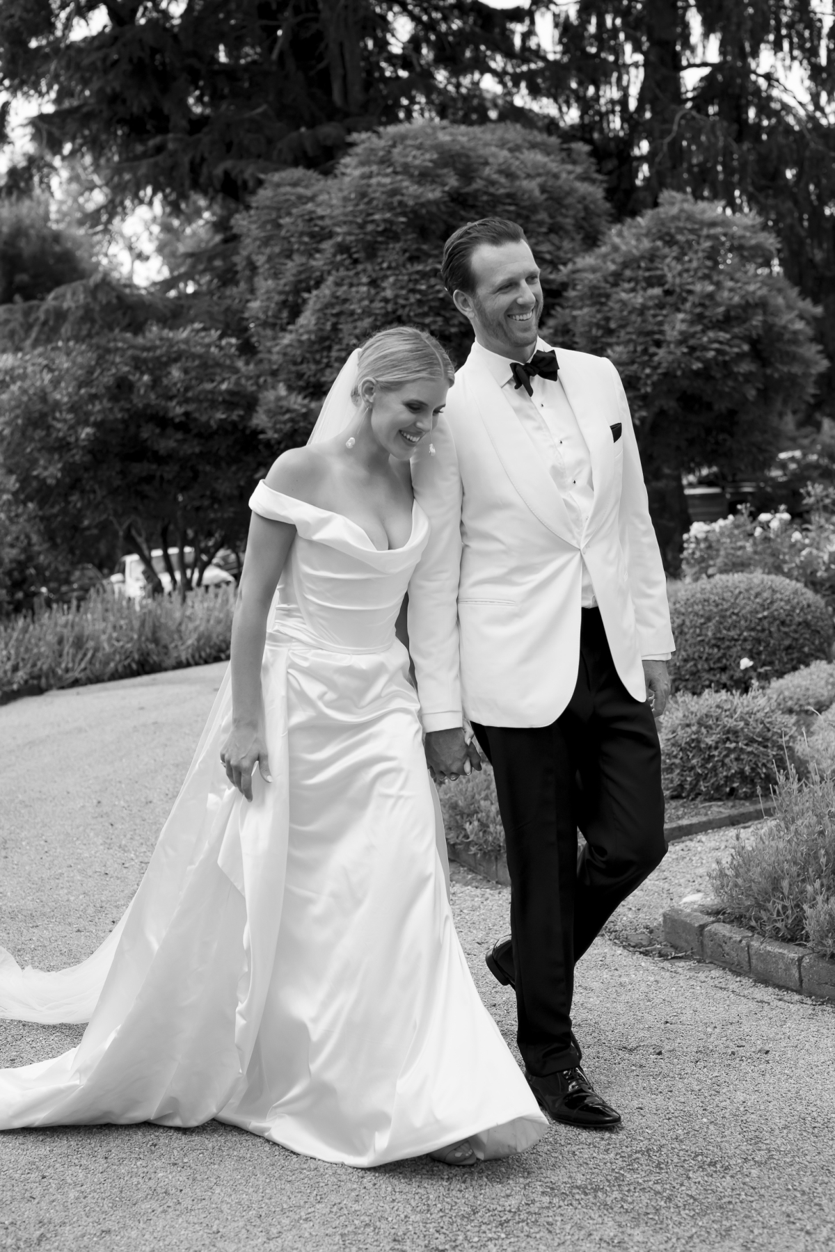 I really struggled to find a wedding dress! I’m usually very decisive so it worried me that I found it difficult to pick one. I ended up buying five dresses, wore two of them, and have since sold them all. I knew I wanted to have two “looks” - something more formal and impactful for the ceremony and something a little slinky and sexy for the reception. I originally bought an Alex Perry ball gown for the ceremony and a Rachel Gilbert fitted dinner dress for the reception. I was still unsure about both of them and was keeping my eyes peeled for something that spoke to me. Four weeks before the wedding, I found a Vivienne Westwood Cora Cocotte gown online. Vivienne Westwood is not available to purchase in Australia, so I wasn’t sure if it would fit or suit me. I took the plunge and ordered it. It arrived two weeks later and fit like a glove - an absolute dream dress, the construction is immaculate. I didn’t even need to alter it. When I put it on - I finally had that moment - I remember thinking to myself that “this is what it feels like to find the one”.