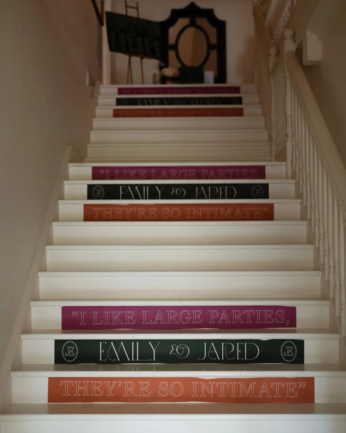 Laice also introduced us to a fabulous graphic designer, George Saad. George had never done wedding stationery before – he works primarily in publishing. We were looking for something to stand out and not be traditional for a wedding, so this worked great for us. He did an amazing job with our menus, invitations, signage, and place settings. He created custom logos for us we utilized throughout the day (including a sticker on the mirrors in the dining hall). We found this to be a very cost-effective way to add a lot of impact.